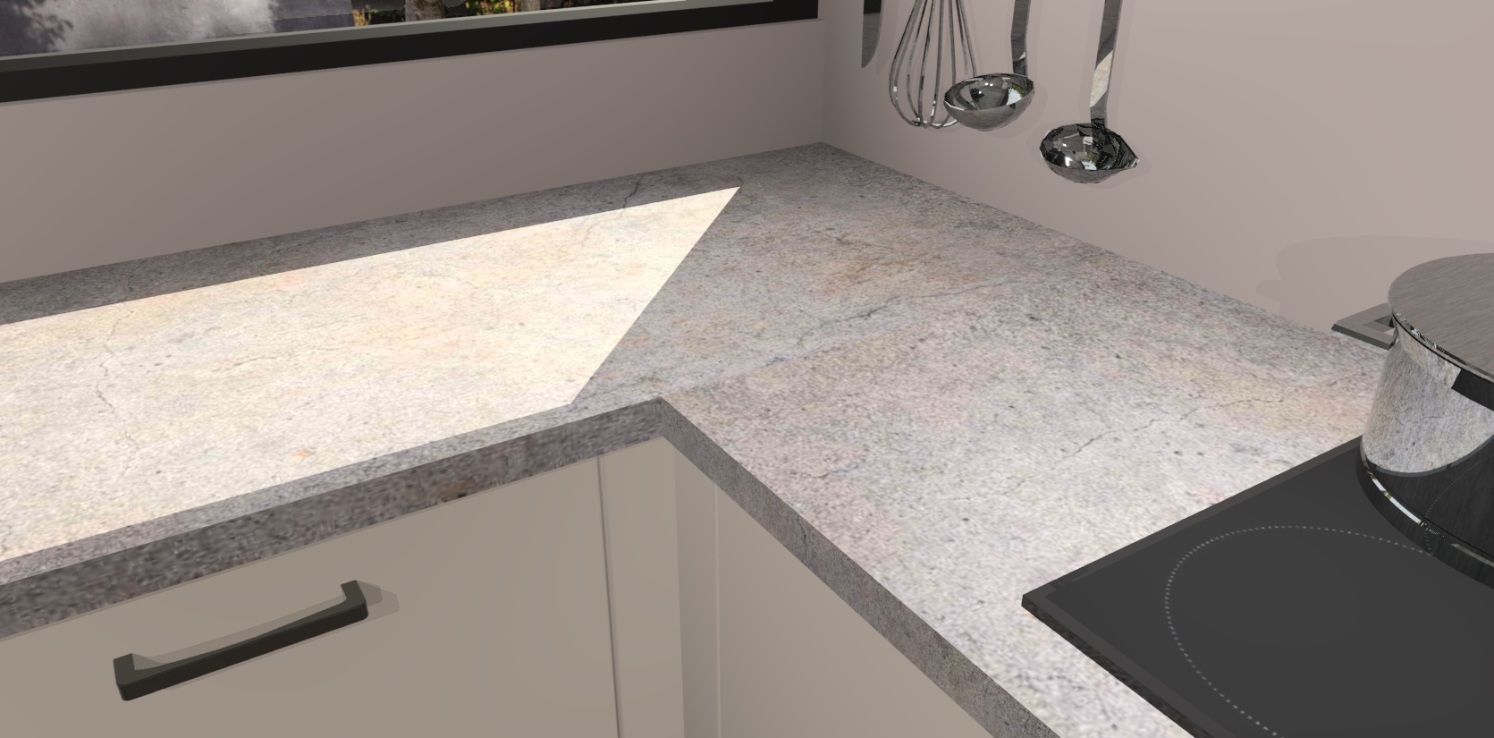 - Bij een hoekwerkblad zijn de hoeken in gevreesd en op maat gemaakt
