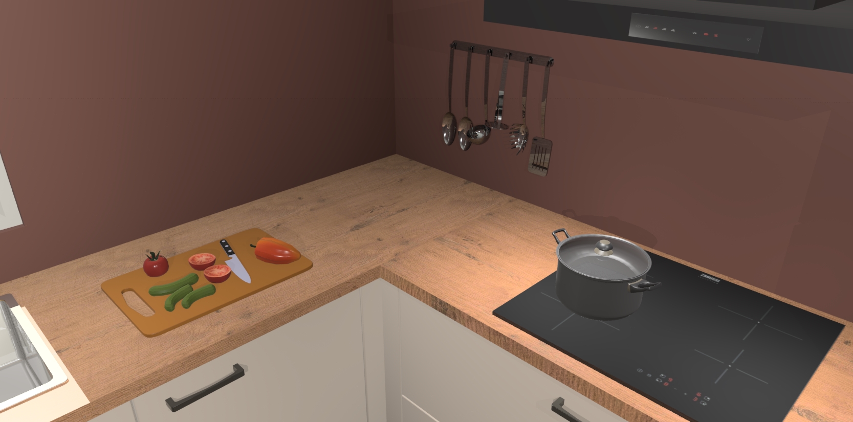 - Uitsparing van kookplaat, spoelbak en kraan dient u zelf te verzorgen.