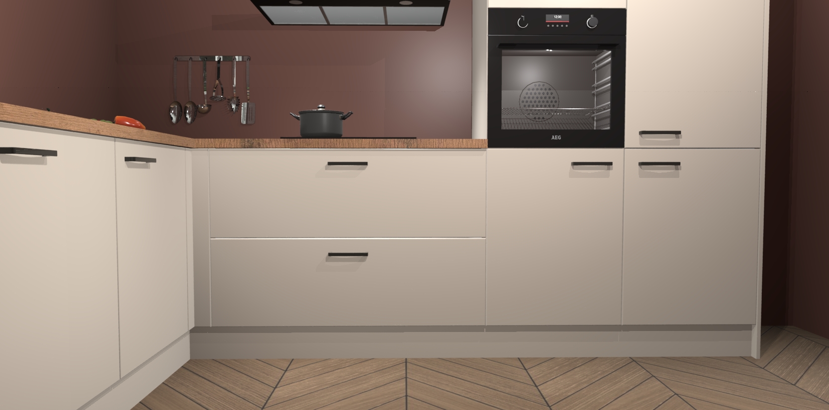 Inclusief plinten, stelpoten en werkblad