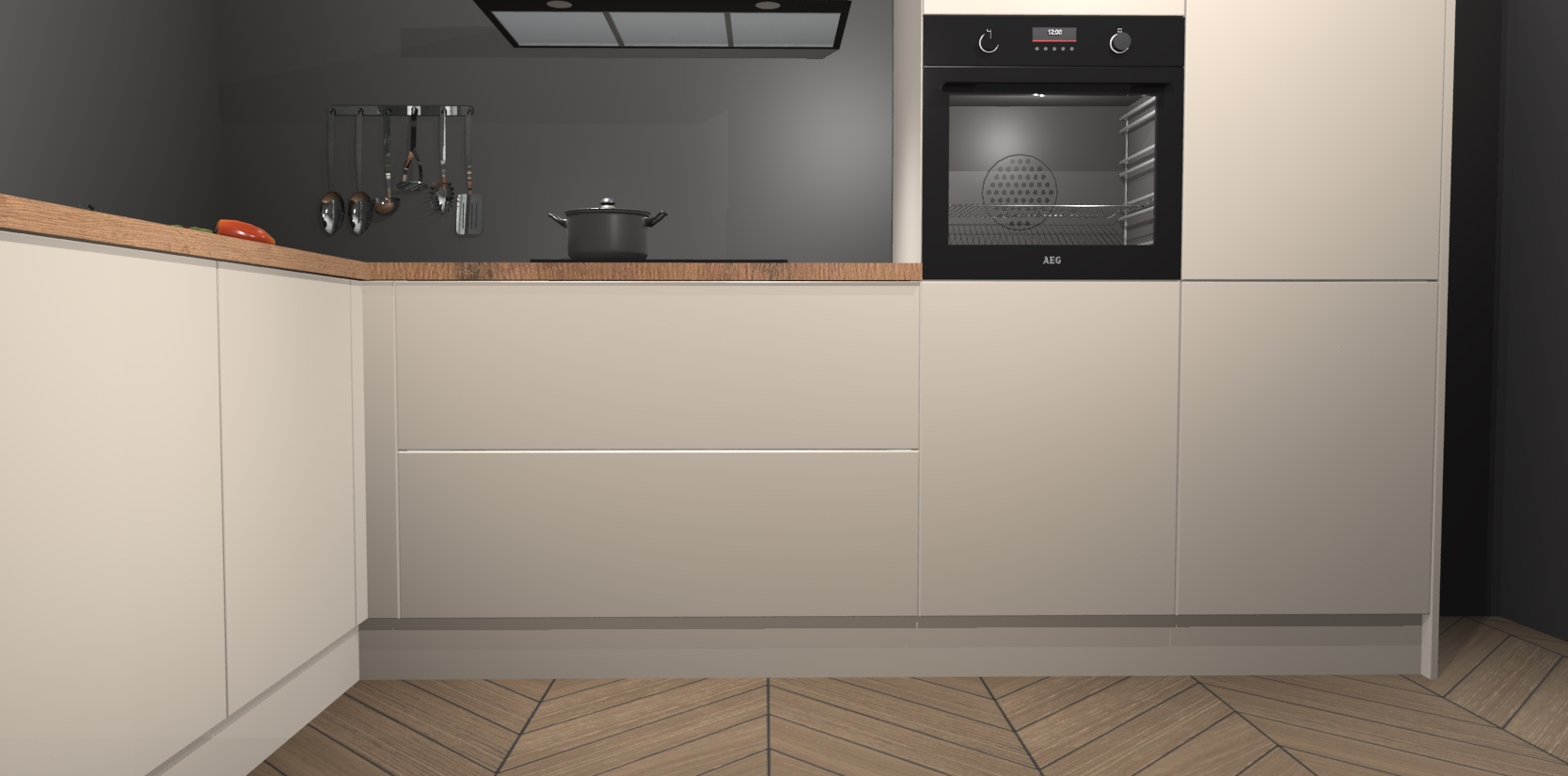 Veel meer dan dat: met de aankoop van deze keuken krijgt u maar liefst 5 ingebouwde huishoudtoestellen, zoals een oven, inductiekookplaat, afzuigkap, vaatwasser en koelkast. Ze zijn makkelijk te upgraden naar AEG of bijvoorbeeld van oven naar een combimagnetron na bestelling. En alsof dat nog niet genoeg is hebben de kastjes allemaal softclose deuren voor extra comfort en luxe!
