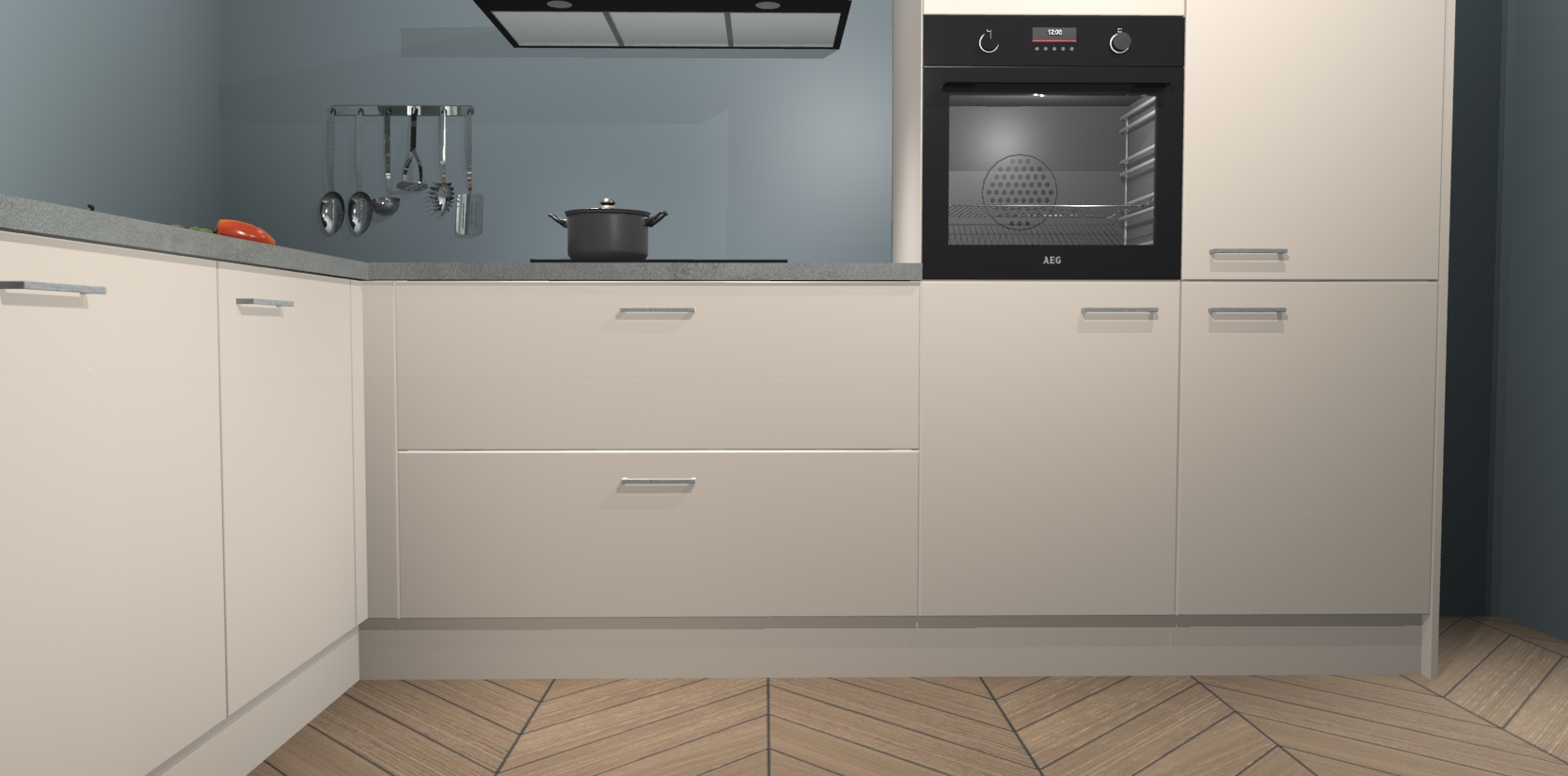 Veel meer dan dat: met de aankoop van deze keuken krijgt u maar liefst 5 ingebouwde huishoudtoestellen, zoals een oven, inductiekookplaat, afzuigkap, vaatwasser en koelkast. Ze zijn makkelijk te upgraden naar AEG of bijvoorbeeld van oven naar een combimagnetron na bestelling. En alsof dat nog niet genoeg is hebben de kastjes allemaal softclose deuren voor extra comfort en luxe!
