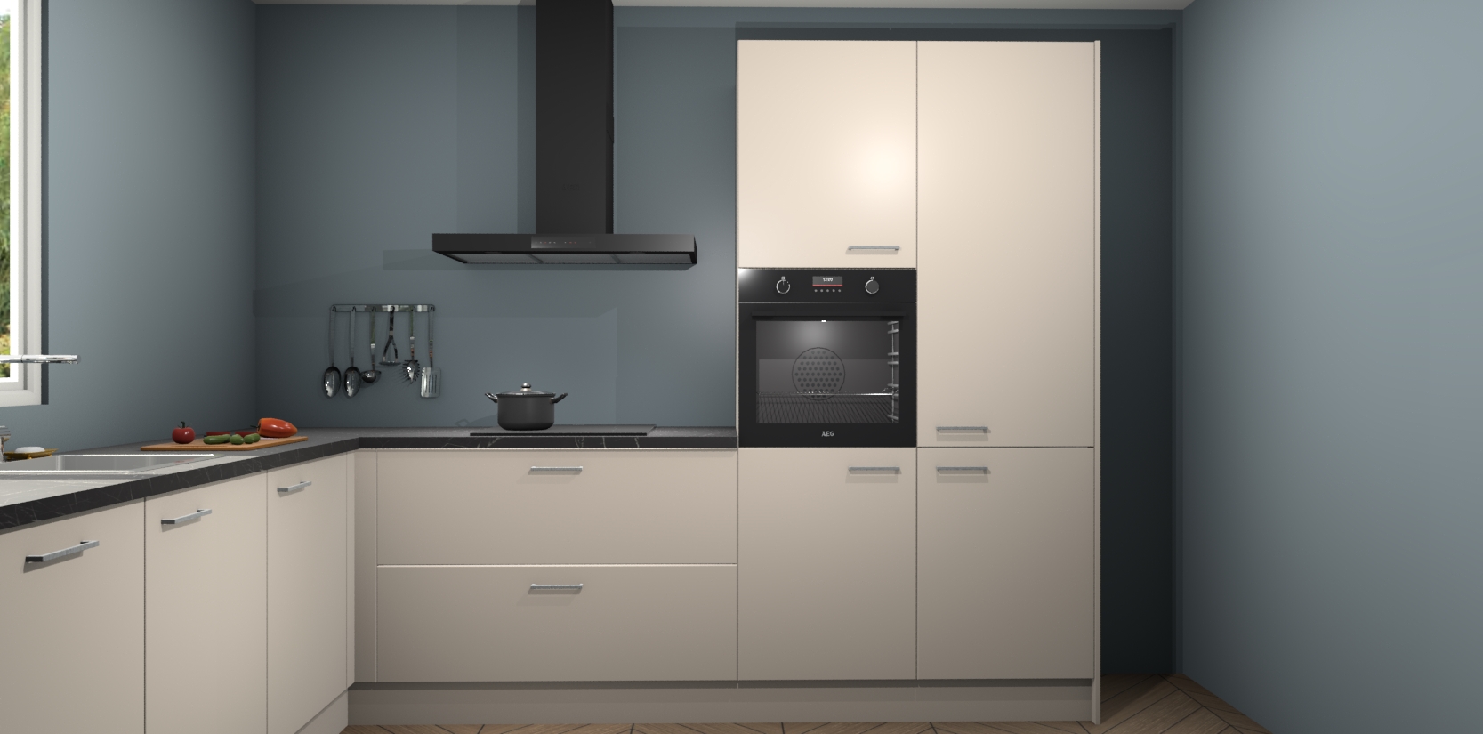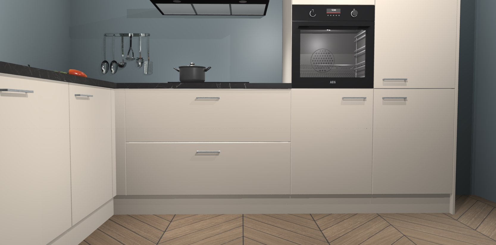 Veel meer dan dat: met de aankoop van deze keuken krijgt u maar liefst 5 ingebouwde huishoudtoestellen, zoals een oven, inductiekookplaat, afzuigkap, vaatwasser en koelkast. Ze zijn makkelijk te upgraden naar AEG of bijvoorbeeld van oven naar een combimagnetron na bestelling. En alsof dat nog niet genoeg is hebben de kastjes allemaal softclose deuren voor extra comfort en luxe!