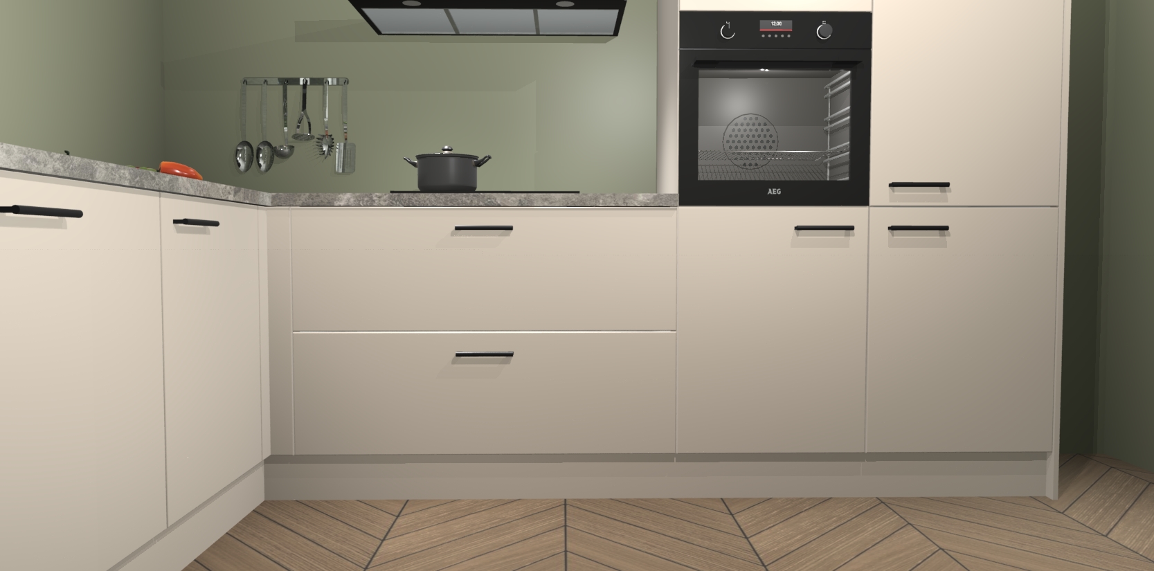 Veel meer dan dat: met de aankoop van deze keuken krijgt u maar liefst 5 ingebouwde huishoudtoestellen, zoals een oven, inductiekookplaat, afzuigkap, vaatwasser en koelkast. Ze zijn makkelijk te upgraden naar AEG of bijvoorbeeld van oven naar een combimagnetron na bestelling. En alsof dat nog niet genoeg is hebben de kastjes allemaal softclose deuren voor extra comfort en luxe!