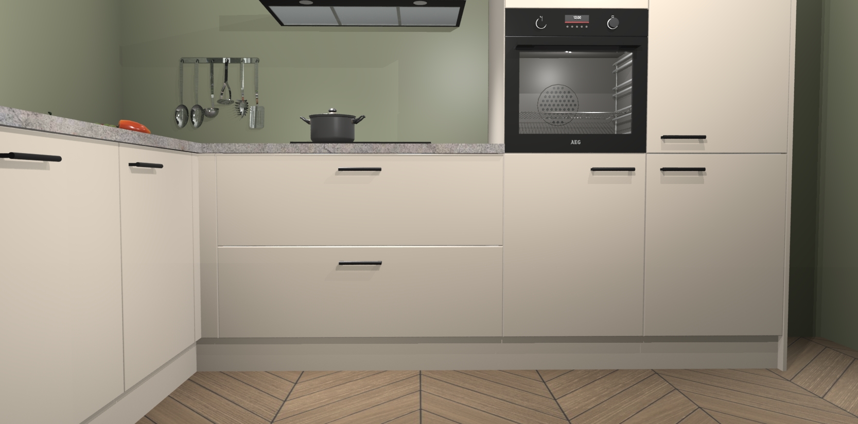 Inclusief plinten, stelpoten en werkblad