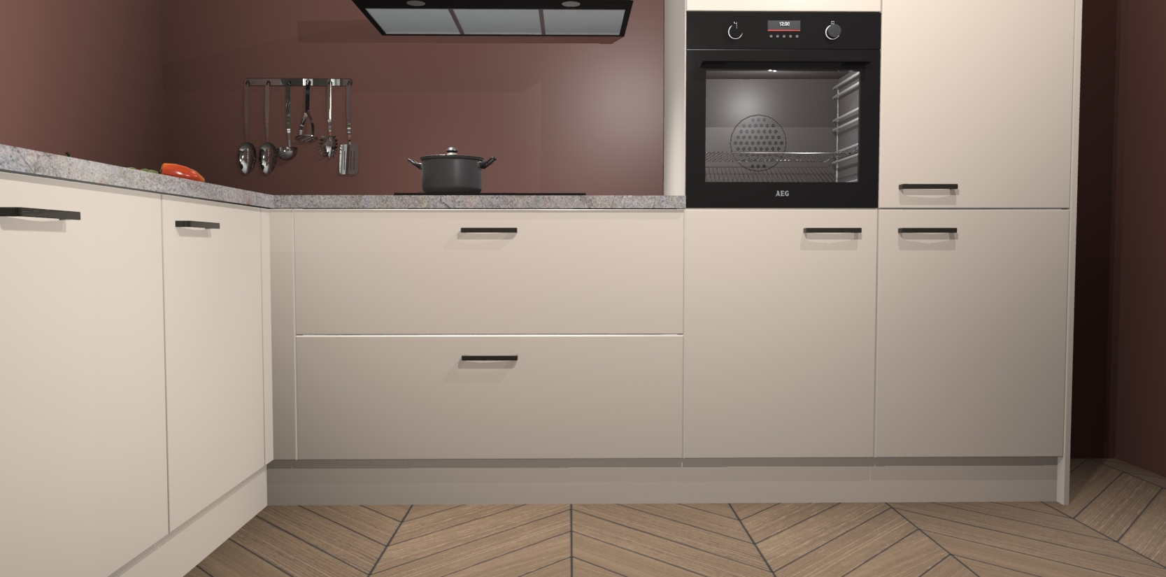 Veel meer dan dat: met de aankoop van deze keuken krijgt u maar liefst 5 ingebouwde huishoudtoestellen, zoals een oven, inductiekookplaat, afzuigkap, vaatwasser en koelkast. Ze zijn makkelijk te upgraden naar AEG of bijvoorbeeld van oven naar een combimagnetron na bestelling. En alsof dat nog niet genoeg is hebben de kastjes allemaal softclose deuren voor extra comfort en luxe!