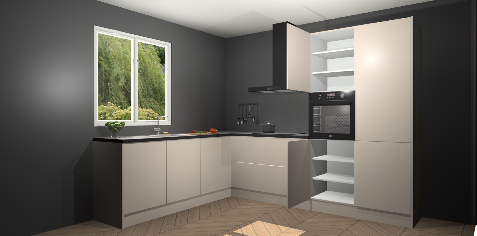 Veel meer dan dat: met de aankoop van deze keuken krijgt u maar liefst 5 ingebouwde huishoudtoestellen, zoals een oven, inductiekookplaat, afzuigkap, vaatwasser en koelkast. Ze zijn makkelijk te upgraden naar AEG of bijvoorbeeld van oven naar een combimagnetron na bestelling. En alsof dat nog niet genoeg is hebben de kastjes allemaal softclose deuren voor extra comfort en luxe!