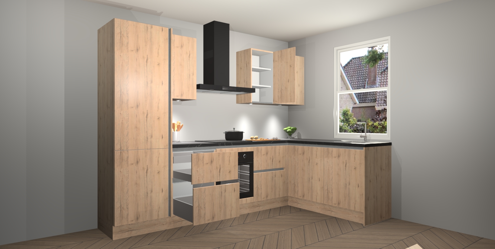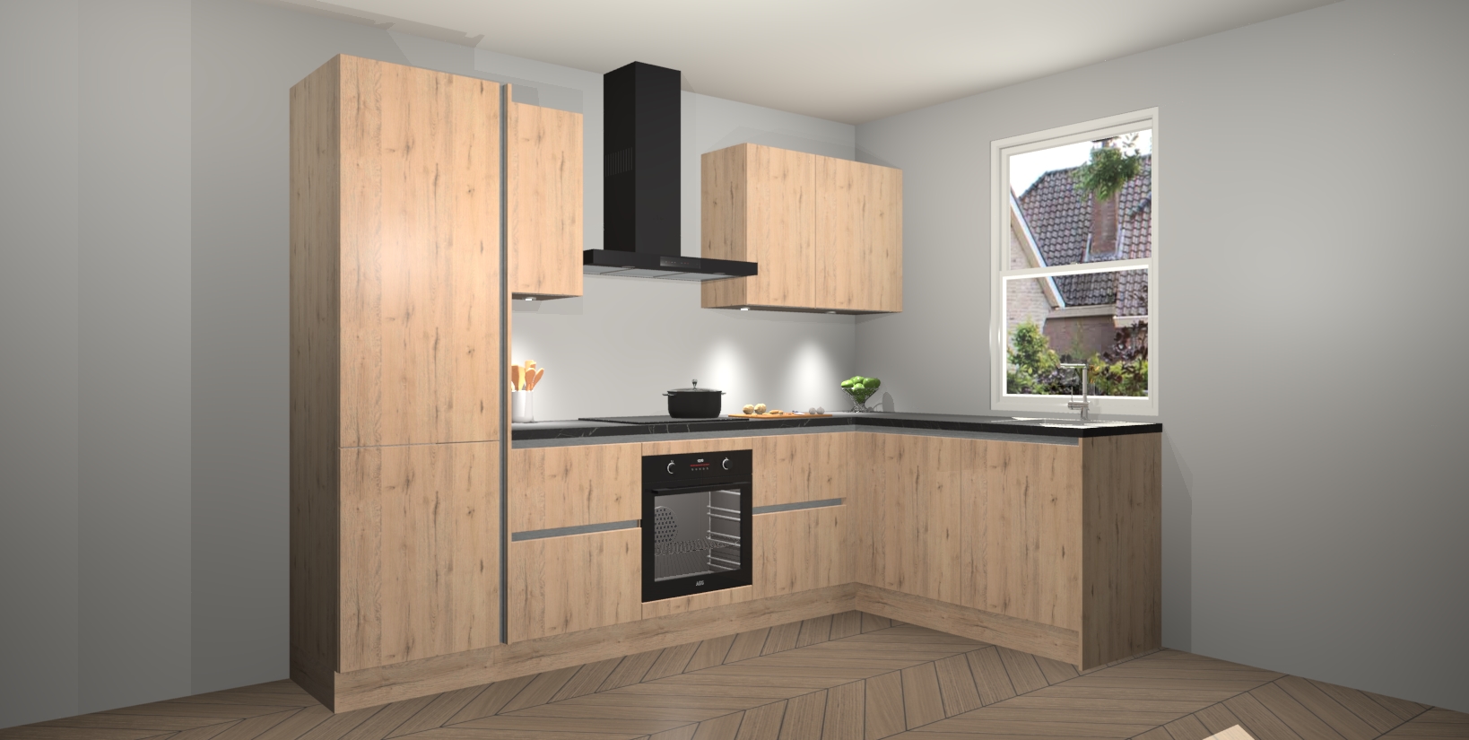 Maak kennis met de trendsettende en luxe Madera Natuur greeploze keuken Bazel! Deze uitzonderlijke keuken van Duitse kwaliteit is stijlvol, modern en perfect om elk huis mee op te fleuren. De binnenkant van de kasten worden meegenomen in een bijpassende kleur om een samenhangende eigentijdse esthetiek te voltooien. U zult dol zijn op hoe uw pas gerenoveerde keuken eruitziet met de Madera Natuur editie!