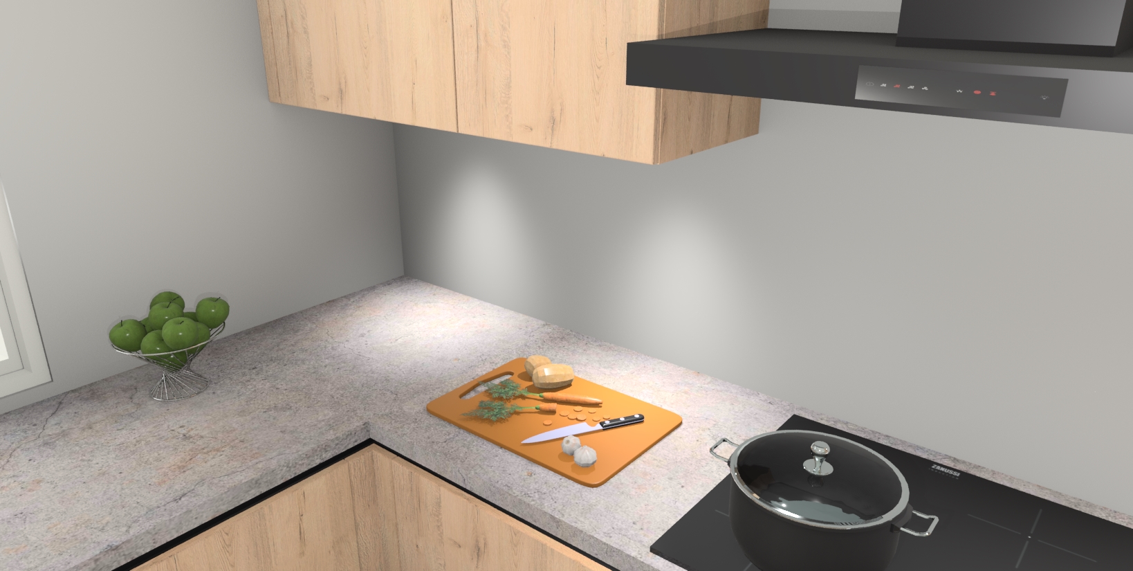 Inclusief plinten, stelpoten en werkblad