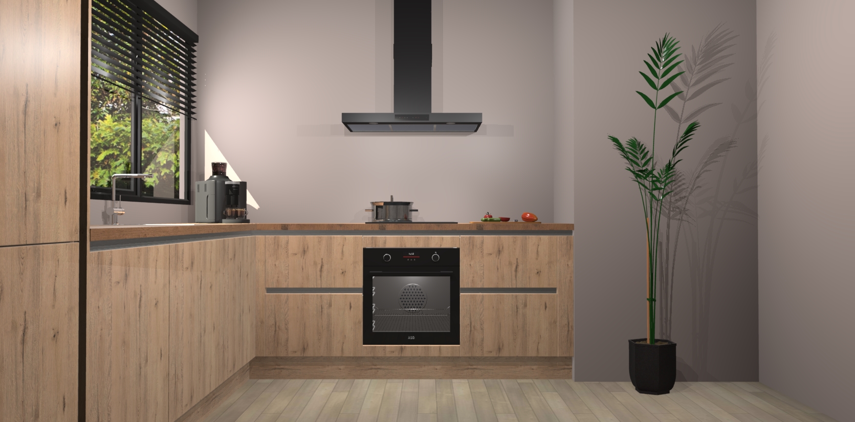 Met een modern, tijdloos design en ruime opslagruimte, zult u zich in no-time thuis voelen in uw nieuwe keuken. Uw leven wordt eenvoudiger met de soft-close deuren die voor het ultieme stille comfort zorgen - geen geluid dat u stoort terwijl u kookt. Ook is de keuken voorzien van 5 ingebouwde apparaten: een oven, inductie kookplaat, afzuigkap, vaatwasser en koelkast. Deze kunnen gemakkelijk na bestelling worden bijgewerkt naar AEG - waardoor uw luxe ervaring compleet is.