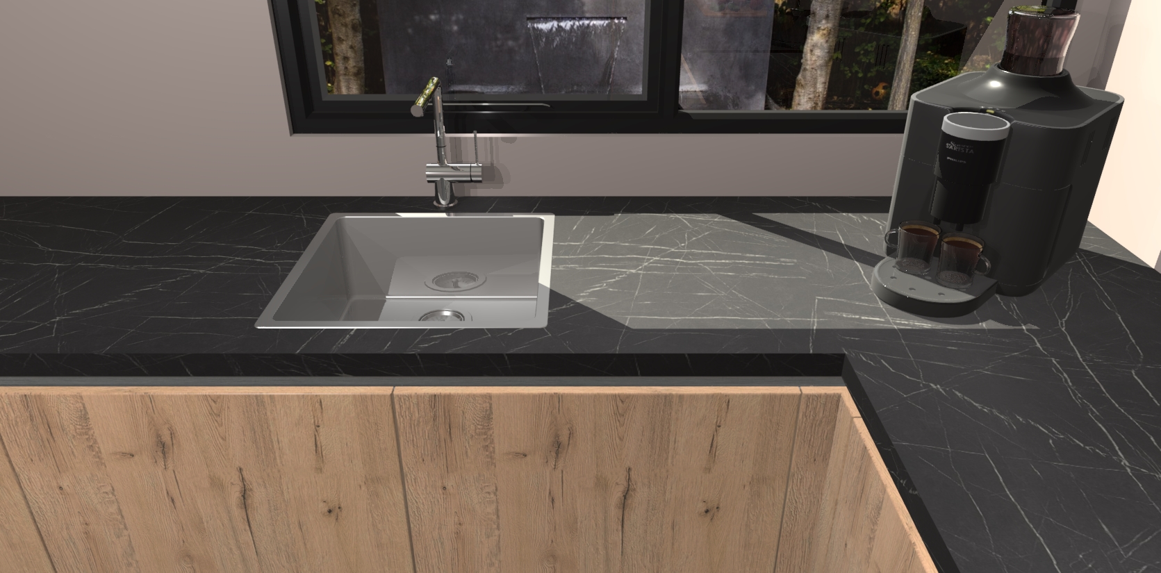 - Bij een hoekwerkblad zijn de hoeken in gevreesd en op maat gemaakt