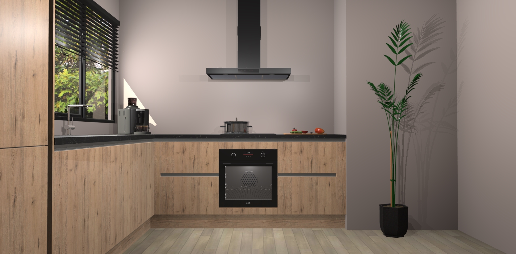 Met een modern, tijdloos design en ruime opslagruimte, zult u zich in no-time thuis voelen in uw nieuwe keuken. Uw leven wordt eenvoudiger met de soft-close deuren die voor het ultieme stille comfort zorgen - geen geluid dat u stoort terwijl u kookt. Ook is de keuken voorzien van 5 ingebouwde apparaten: een oven, inductie kookplaat, afzuigkap, vaatwasser en koelkast. Deze kunnen gemakkelijk na bestelling worden bijgewerkt naar AEG - waardoor uw luxe ervaring compleet is.