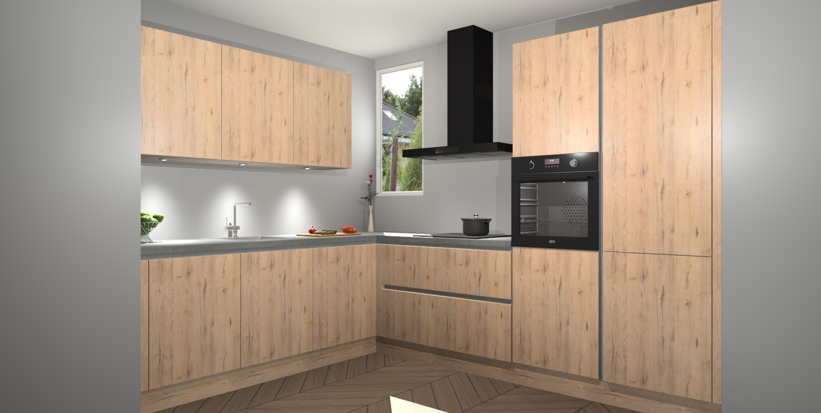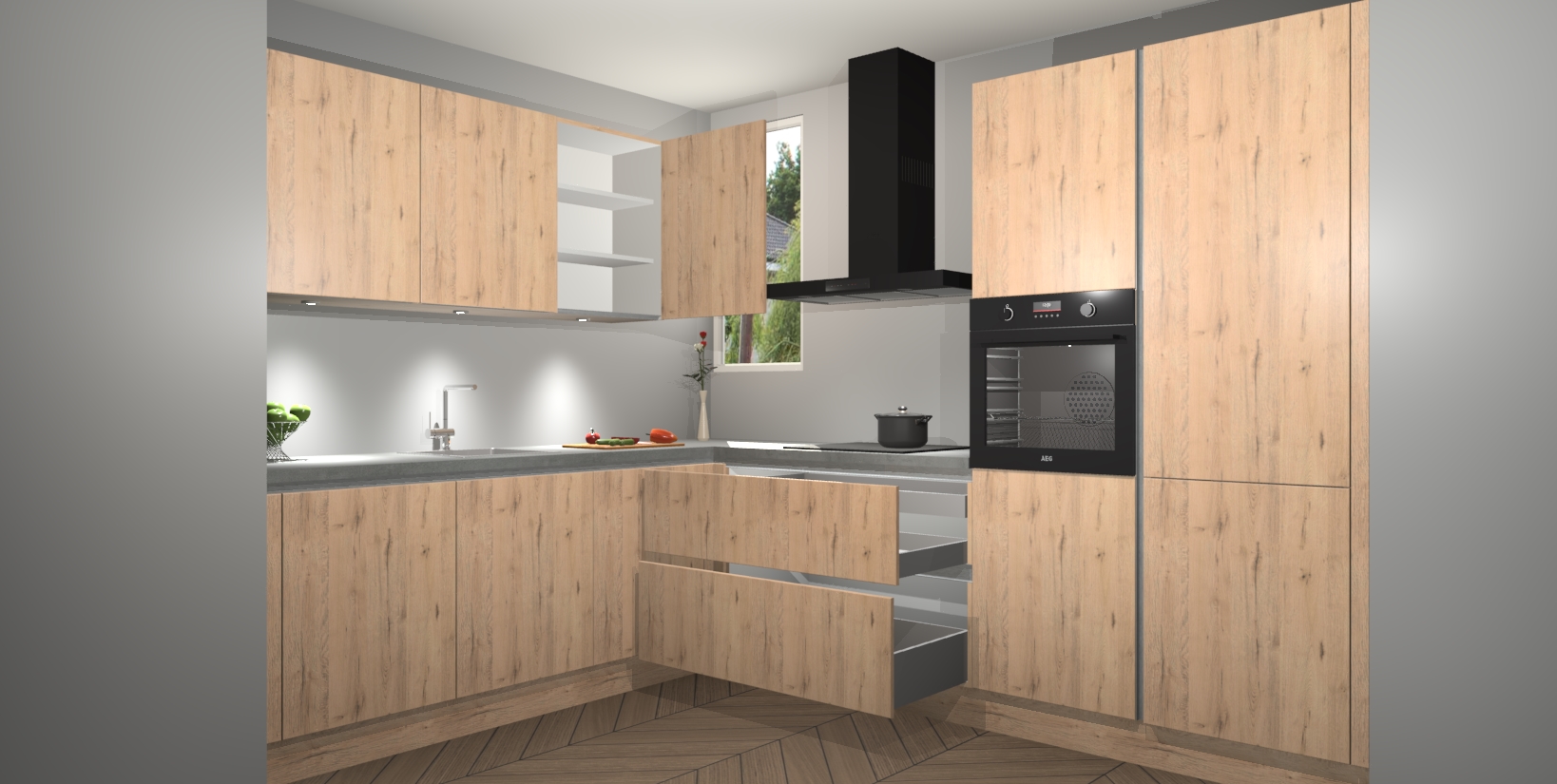 De ruime opbergruimte van dit model maakt het bereiden van voedsel en het gebruik van apparaten snel en gemakkelijk. Het beste van alles is dat het wordt geleverd met vijf inbouwapparaten: een oven, inductiekookplaat, afzuigkap, vaatwasser en koelkast - die allemaal gemakkelijk kunnen worden opgewaardeerd naar AEG na aankoop. Wat de gemaksfactor nog groter maakt, is het feit dat alle cabines voorgemonteerd worden geleverd, zodat u er meteen mee aan de slag kunt!