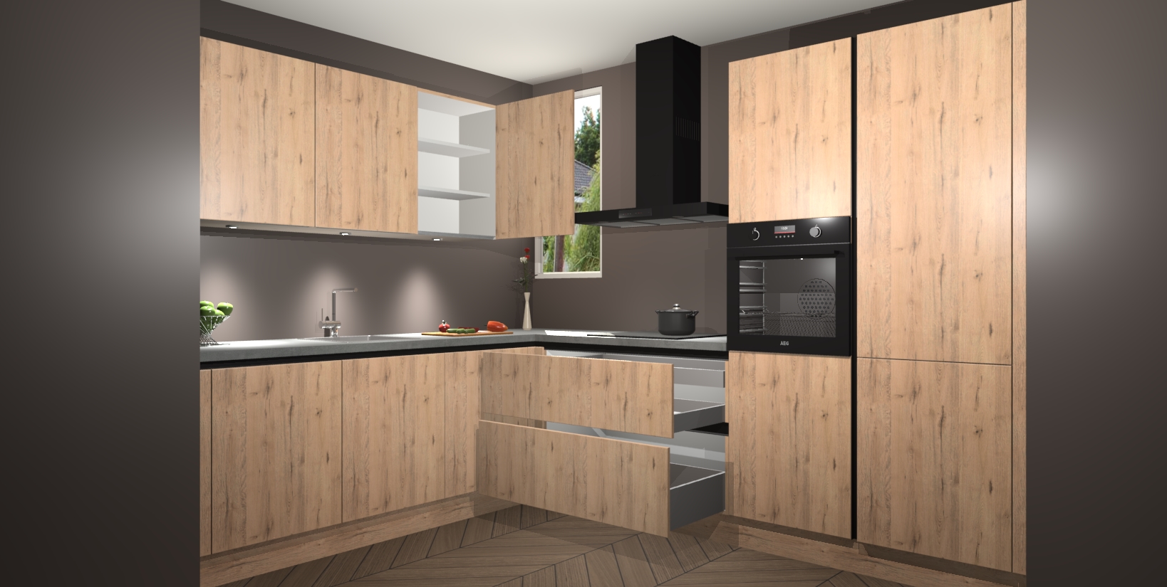 De ruime opbergruimte van dit model maakt het bereiden van voedsel en het gebruik van apparaten snel en gemakkelijk. Het beste van alles is dat het wordt geleverd met vijf inbouwapparaten: een oven, inductiekookplaat, afzuigkap, vaatwasser en koelkast - die allemaal gemakkelijk kunnen worden opgewaardeerd naar AEG na aankoop. Wat de gemaksfactor nog groter maakt, is het feit dat alle cabines voorgemonteerd worden geleverd, zodat u er meteen mee aan de slag kunt!