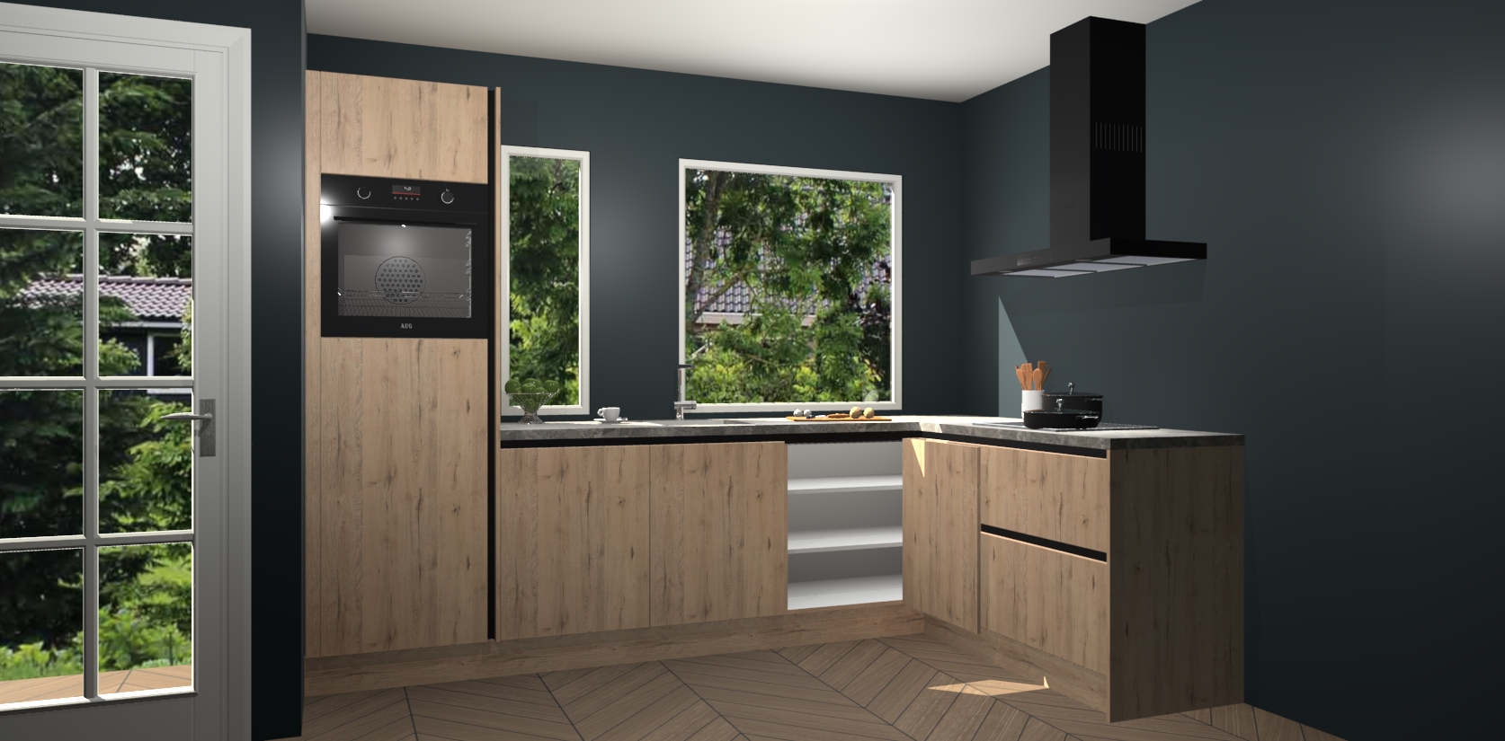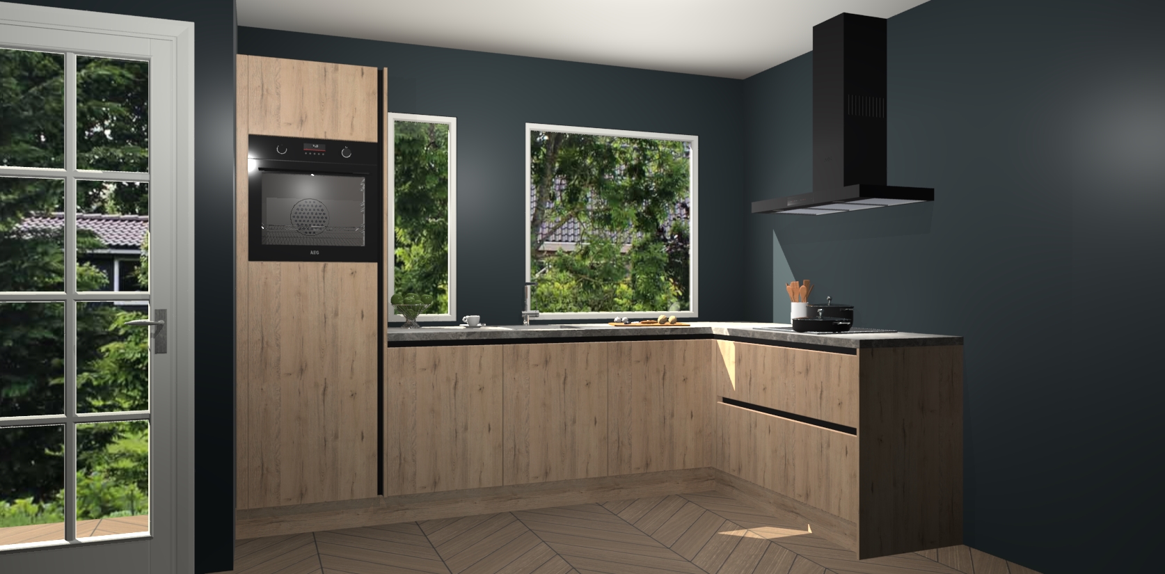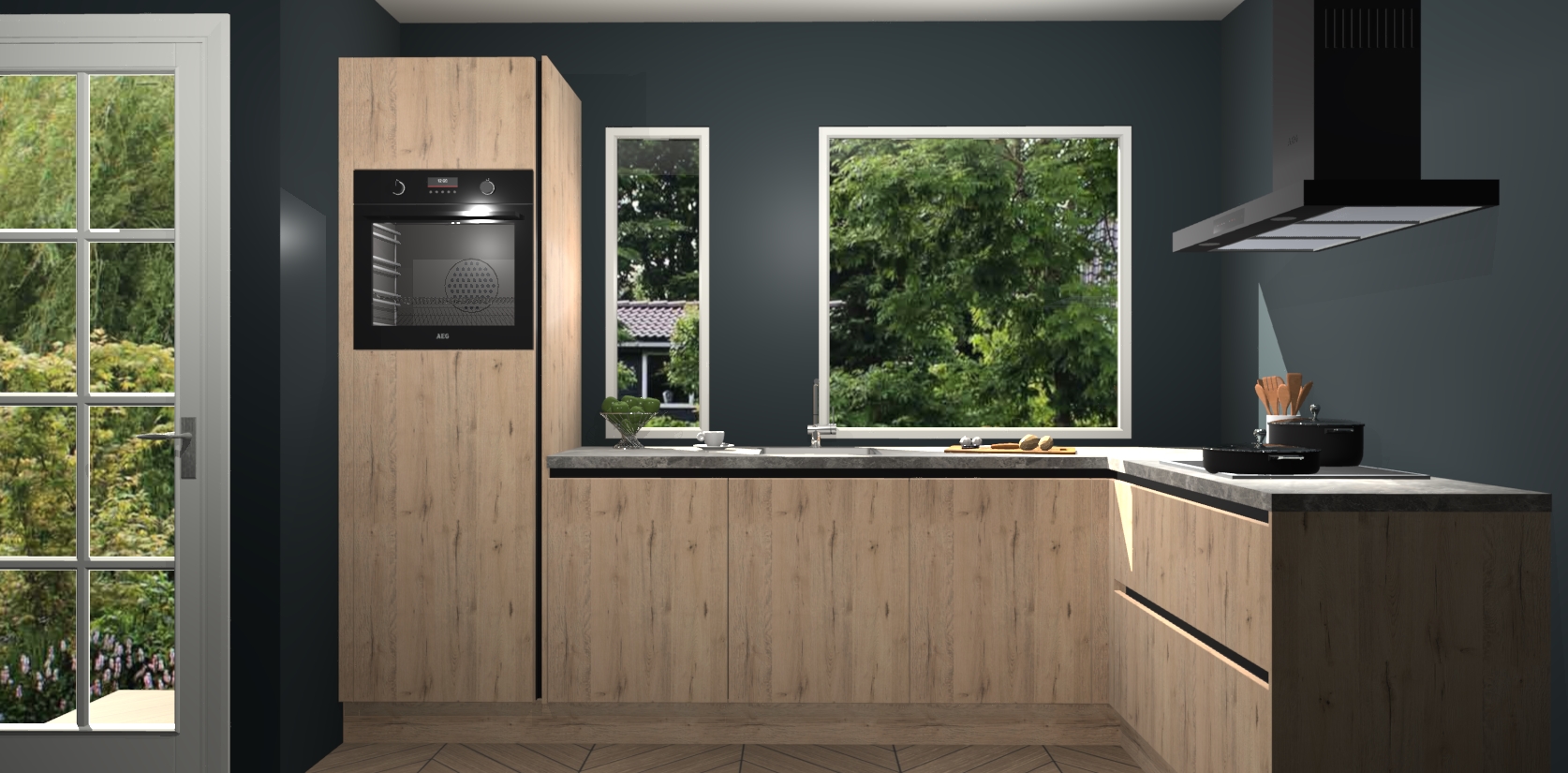 Deze complete keuken wordt geleverd met 5 inbouwapparaten: een oven, inductiekookplaat, afzuigkap, vaatwasser en koelkast. De toestellen kunnen na bestelling ook gemakkelijk worden opgewaardeerd naar AEG. Bovendien is elke deur in deze keuken voorzien van handige softclose technologie voor eenvoudig gebruik! Als een leuke toevoeging zit in deze keuken ook een carrousel, zo hoef je niet meer de hoek in duiken om iets te pakken.