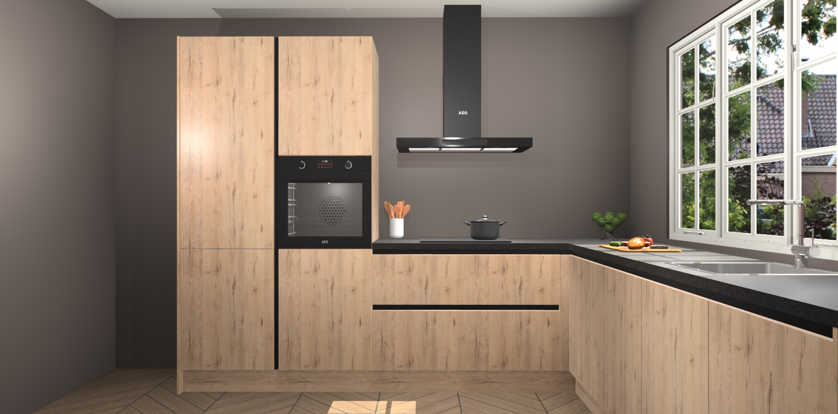 De keuken heeft veel opbergruimte, waardoor u alle ingrediënten gemakkelijk bereikbaar hebt staan. En daarnaast bevat deze volledig uitgeruste keuken ook 5 ingebouwde apparaten: een oven, inductiekookplaat, afzuigkap, vaatwasser en koelkast. Deze zijn heel eenvoudig na bestellen te upgraden naar AEG als u dit wilt. Bovendien zijn de softclose-kastdeuren ideaal; geef ze gewoon even een tikje en ze sluiten automatisch met geruisloze precisie.
