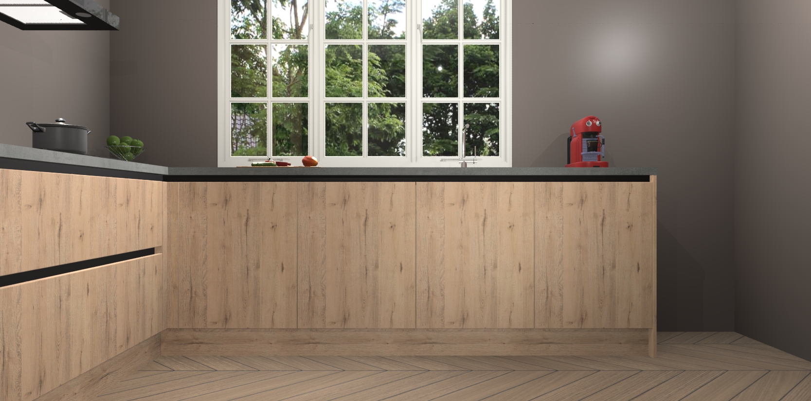 Welkom in de nieuwe wereld van een moderne keuken: de madera natuur greeploze keuken Casablanca! Met dit innovatieve keukendesign haalt u de natuur naar binnen. Neem plaats aan uw hout-look keuken en voel u verbonden met de prachtige madera natuur kleur. Zeer gebruiksvriendelijk, ervaring door prettige materialen en kleur die perfect aansluiten bij uw sfeerkeuze in huis.