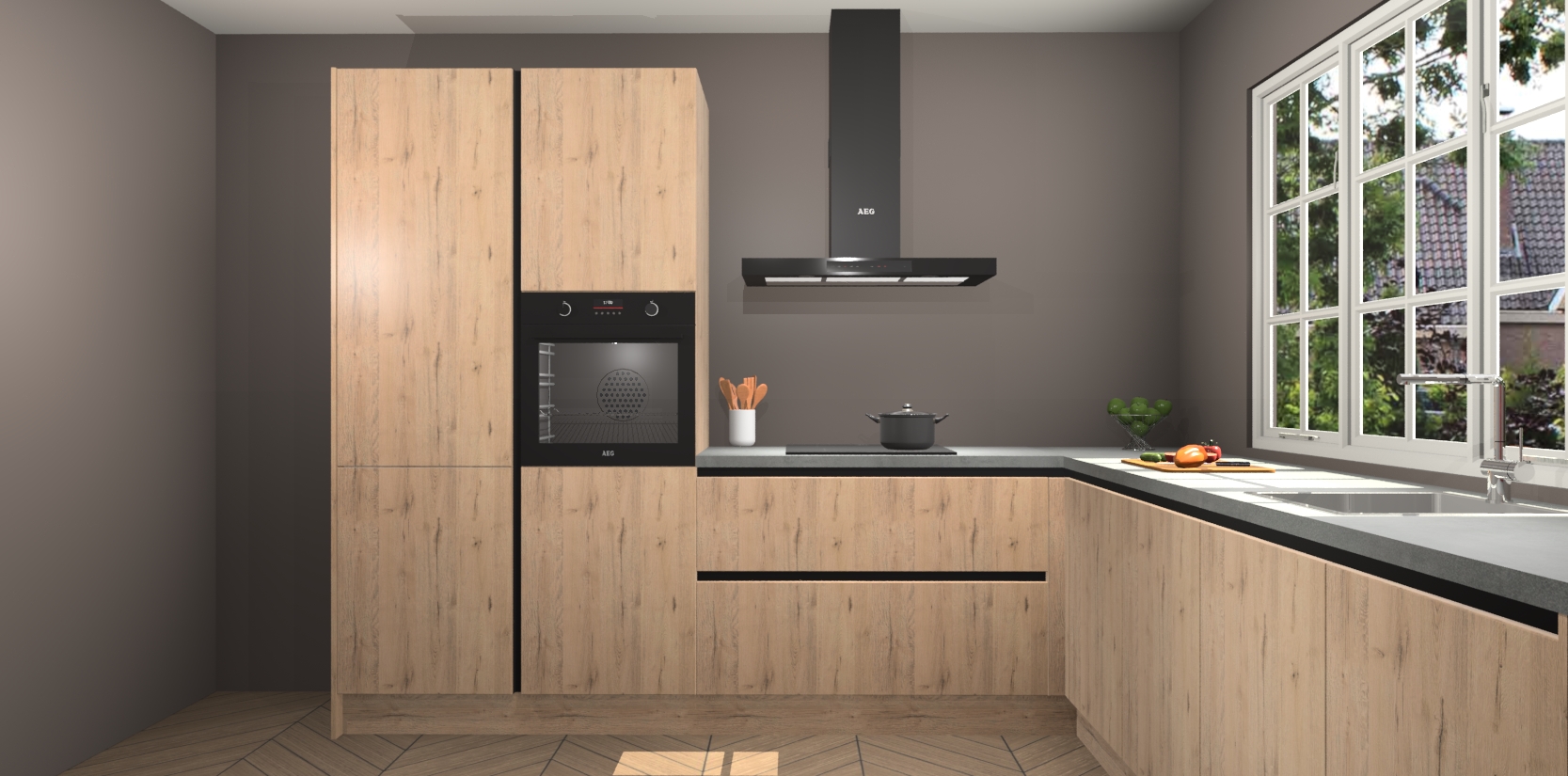 De keuken heeft veel opbergruimte, waardoor u alle ingrediënten gemakkelijk bereikbaar hebt staan. En daarnaast bevat deze volledig uitgeruste keuken ook 5 ingebouwde apparaten: een oven, inductiekookplaat, afzuigkap, vaatwasser en koelkast. Deze zijn heel eenvoudig na bestellen te upgraden naar AEG als u dit wilt. Bovendien zijn de softclose-kastdeuren ideaal; geef ze gewoon even een tikje en ze sluiten automatisch met geruisloze precisie.