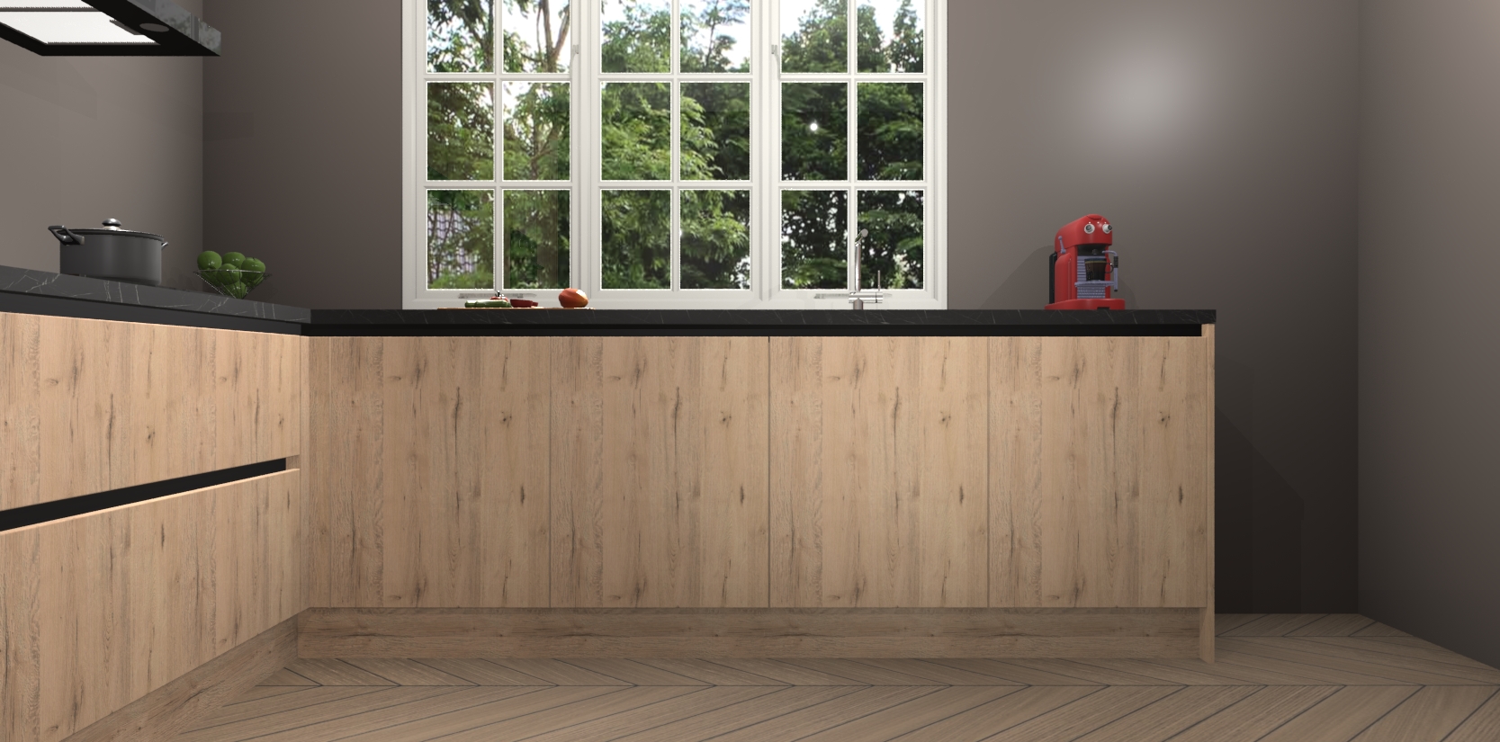 Welkom in de nieuwe wereld van een moderne keuken: de madera natuur greeploze keuken Casablanca! Met dit innovatieve keukendesign haalt u de natuur naar binnen. Neem plaats aan uw hout-look keuken en voel u verbonden met de prachtige madera natuur kleur. Zeer gebruiksvriendelijk, ervaring door prettige materialen en kleur die perfect aansluiten bij uw sfeerkeuze in huis.