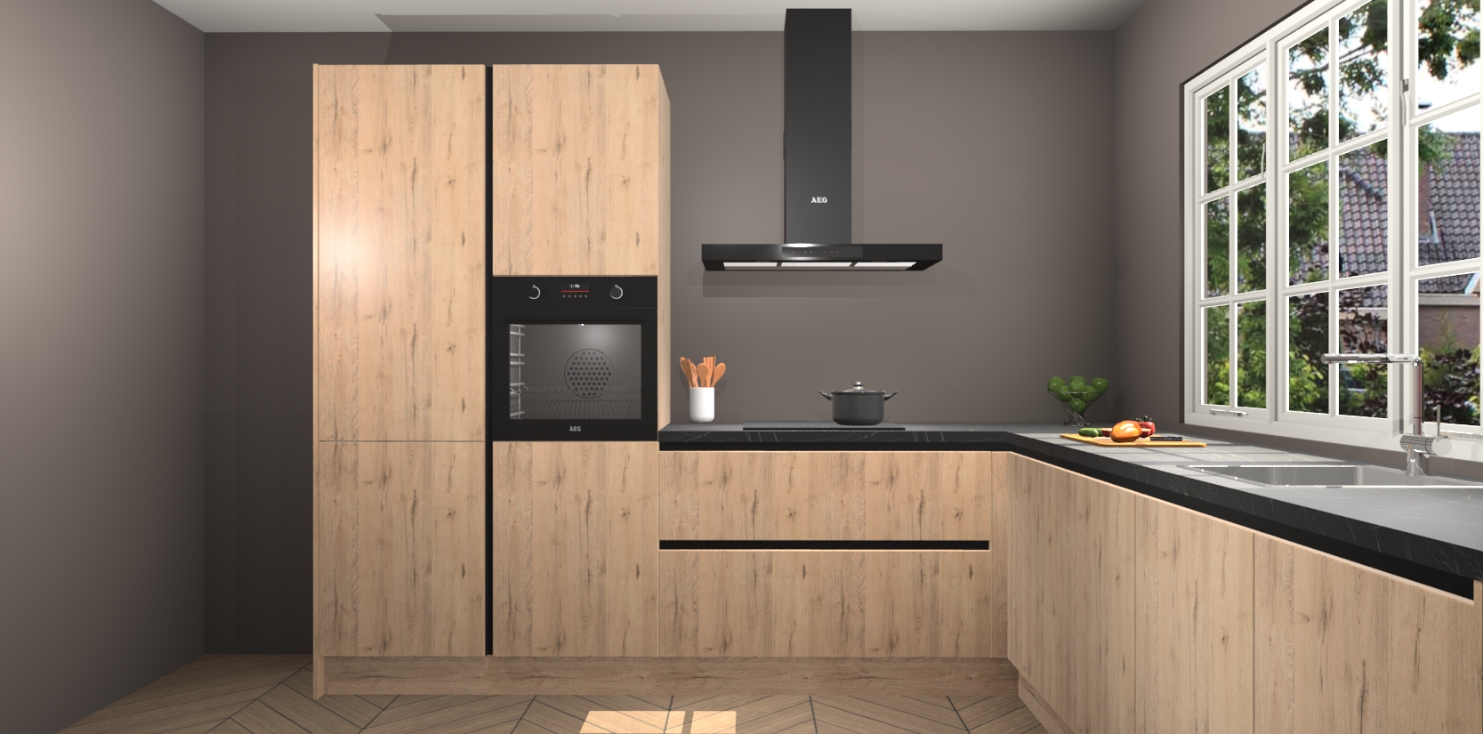 De keuken heeft veel opbergruimte, waardoor u alle ingrediënten gemakkelijk bereikbaar hebt staan. En daarnaast bevat deze volledig uitgeruste keuken ook 5 ingebouwde apparaten: een oven, inductiekookplaat, afzuigkap, vaatwasser en koelkast. Deze zijn heel eenvoudig na bestellen te upgraden naar AEG als u dit wilt. Bovendien zijn de softclose-kastdeuren ideaal; geef ze gewoon even een tikje en ze sluiten automatisch met geruisloze precisie.