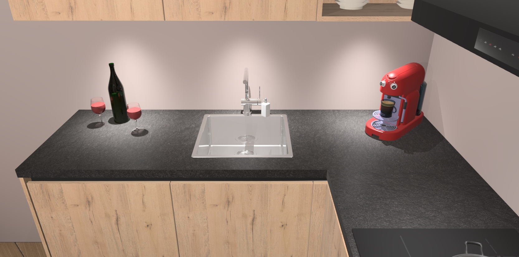 - Bij een hoekwerkblad zijn de hoeken in gevreesd en op maat gemaakt
