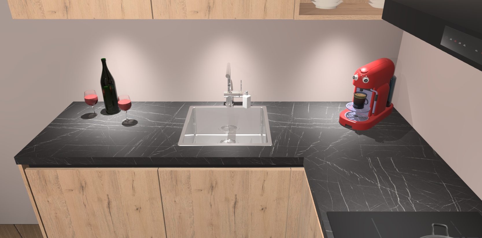 - Bij een hoekwerkblad zijn de hoeken in gevreesd en op maat gemaakt