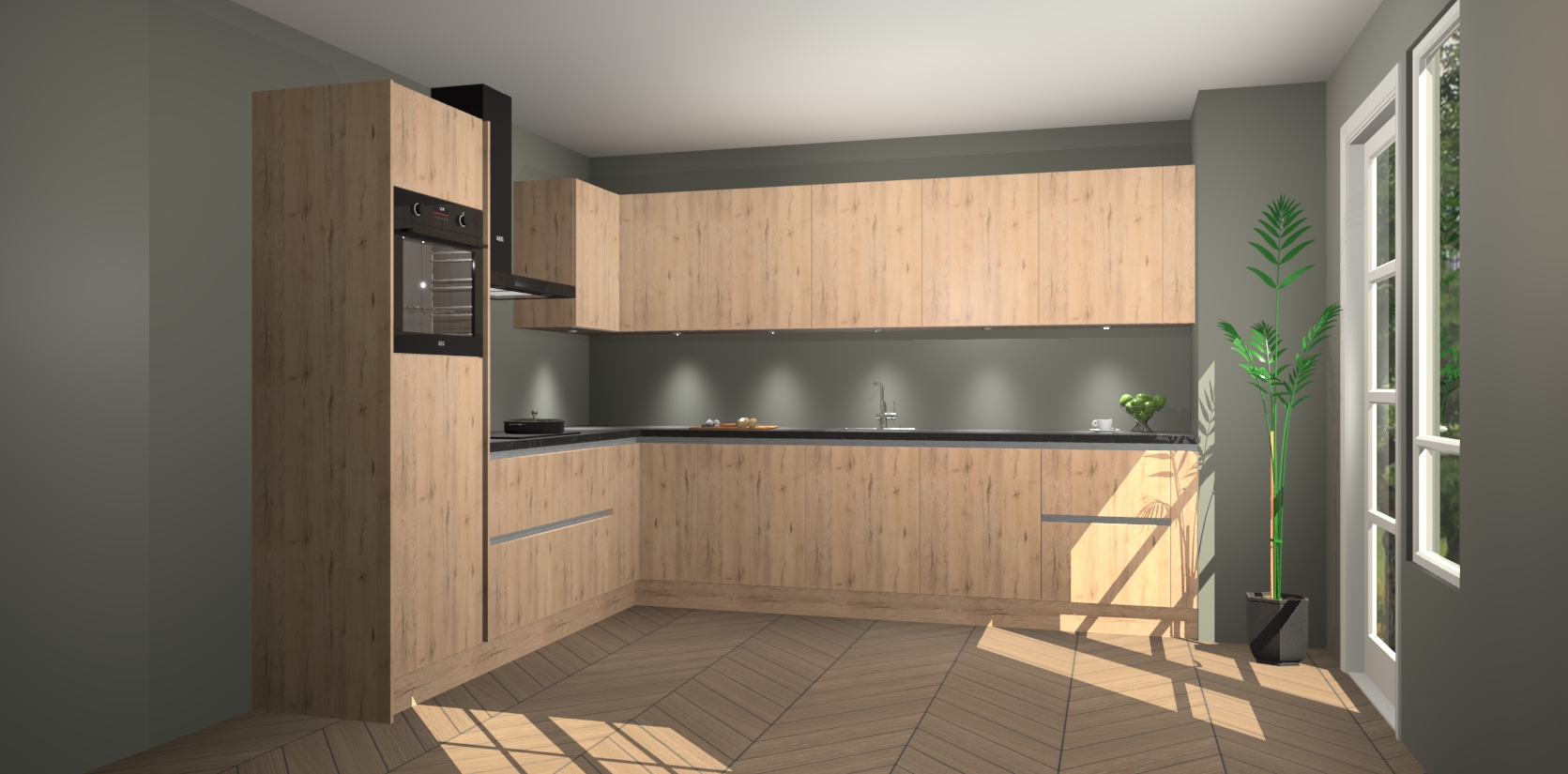 Als u op zoek bent naar de perfecte keuken om uw huis mee op te fleuren, zoek dan niet verder dan de Madera Natuur greeploze keuken Debar. Deze prachtige hoekkeuken straalt warmte en luxe uit met een modern maar geraffineerd design. Maak u nooit meer zorgen of u wel genoeg opbergruimte heeft; dit meubel biedt voldoende opbergruimte om al uw keukenbenodigdheden binnen handbereik te houden.