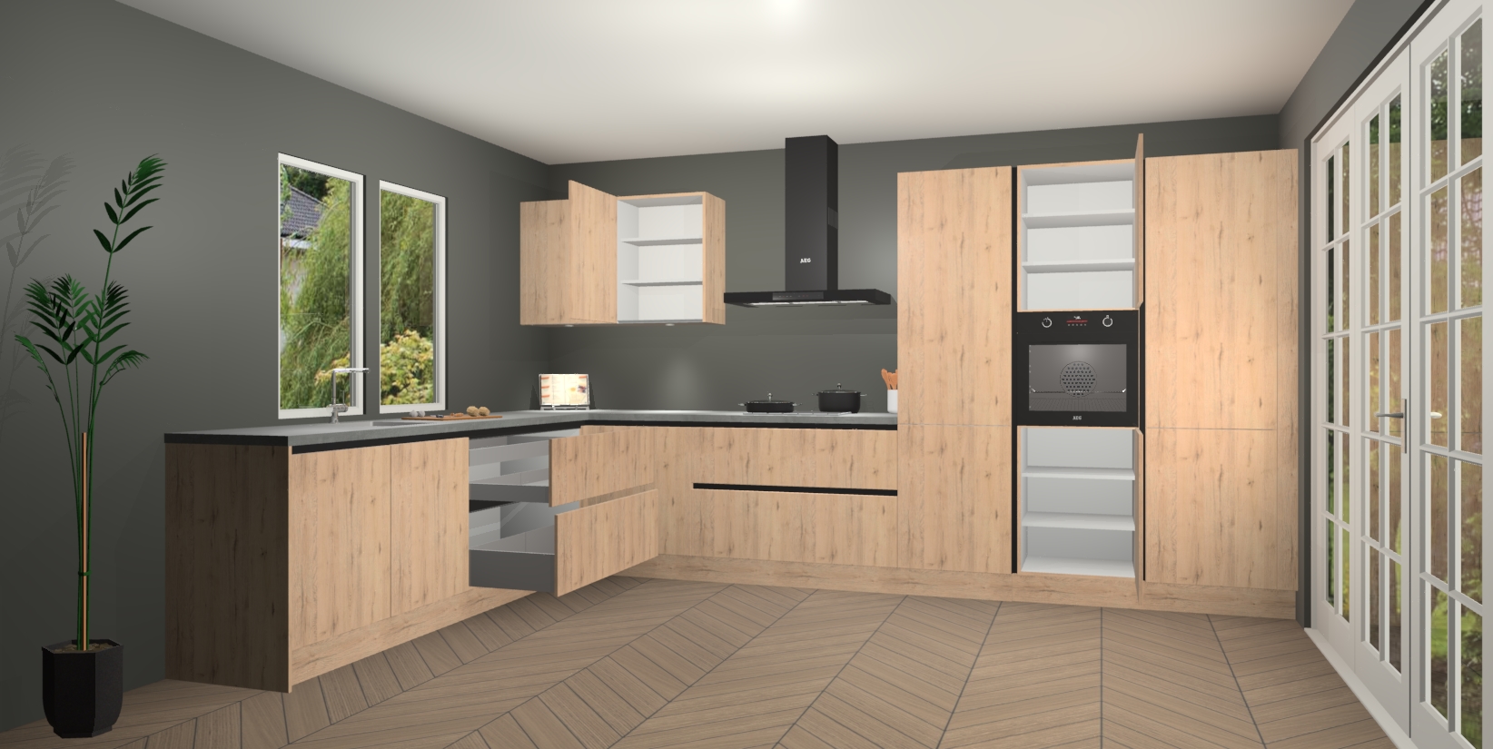 Kom dichtbij de perfecte keuken van uw dromen met de Madera Natuur greeploze keuken Debrecen. Met een prachtige houtlook en eigentijds ontwerp, straalt deze keuken warmte en sfeer uit. Of u nu liefhebber bent van traditionele of moderne stijlen, er is genoeg ruimte om aan al uw behoeften te voldoen.