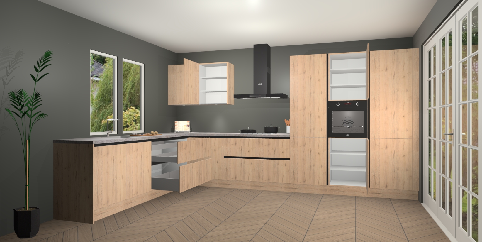 Kom dichtbij de perfecte keuken van uw dromen met de Madera Natuur greeploze keuken Debrecen. Met een prachtige houtlook en eigentijds ontwerp, straalt deze keuken warmte en sfeer uit. Of u nu liefhebber bent van traditionele of moderne stijlen, er is genoeg ruimte om aan al uw behoeften te voldoen.