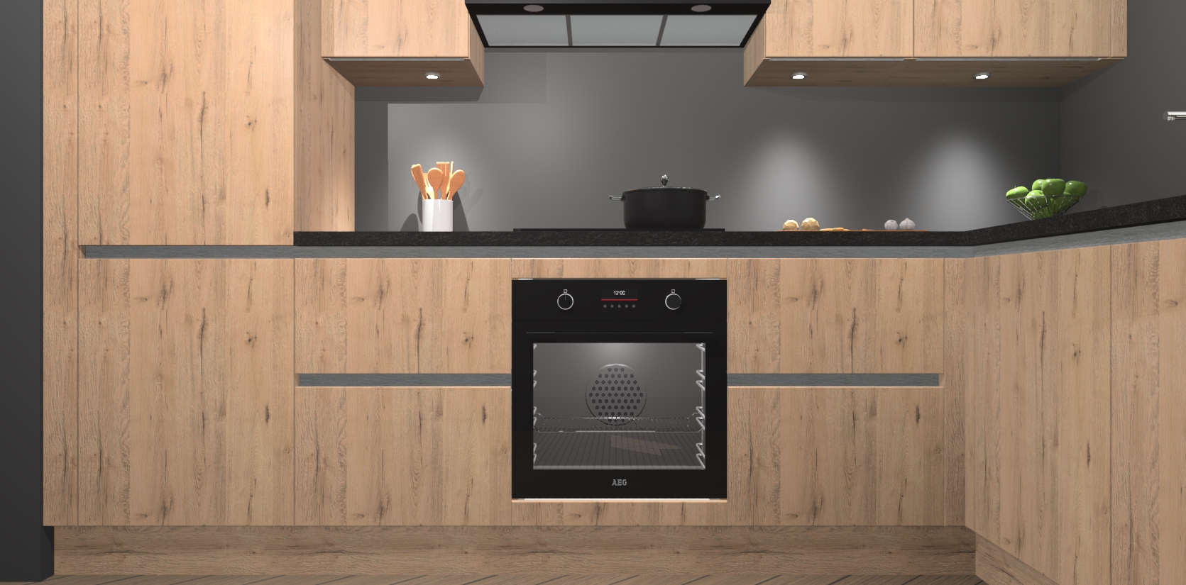 De Madera Natuur greeploze keuken Geneve is uitgerust met 5 inbouwapparaten - een oven, inductiekookplaat, afzuigkap, vaatwasser en koelkast - voor al uw kook- en bewaarbehoeftes. U kunt deze apparaten desgewenst eenvoudig upgraden naar AEG of de oven omruilen voor een combimagnetron na het plaatsen van uw bestelling. En met de soft close deuren, voldoende opbergruimte en kasten die voorgemonteerd worden geleverd, bent u in een mum van tijd klaar om heerlijke maaltijden te bereiden!