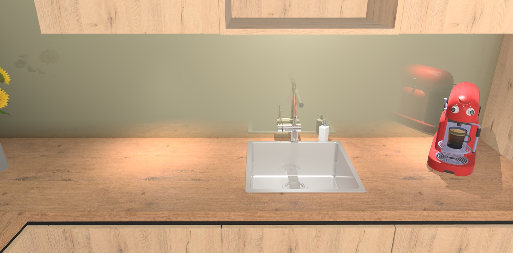 - De spoelbak is nog niet in gevreesd. Dit dient tijdens het werk gedaan te worden