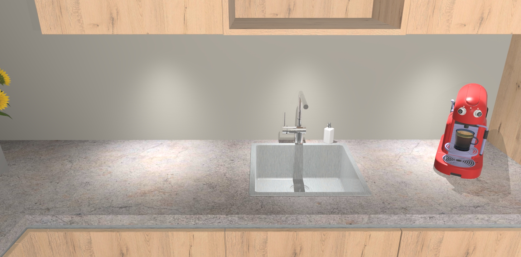 - De spoelbak is nog niet in gevreesd. Dit dient tijdens het werk gedaan te worden