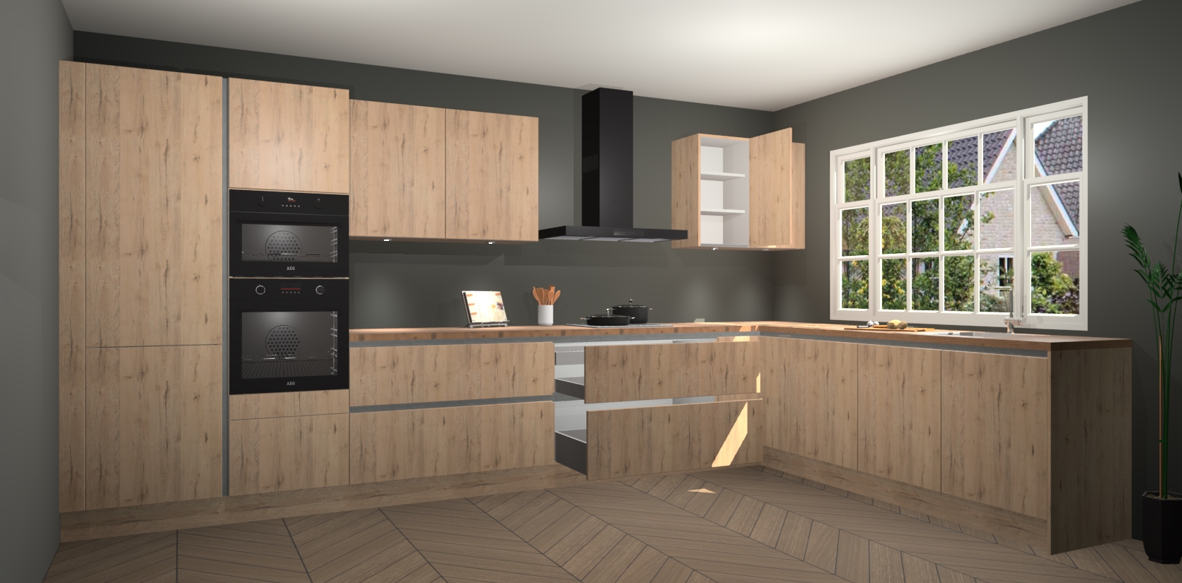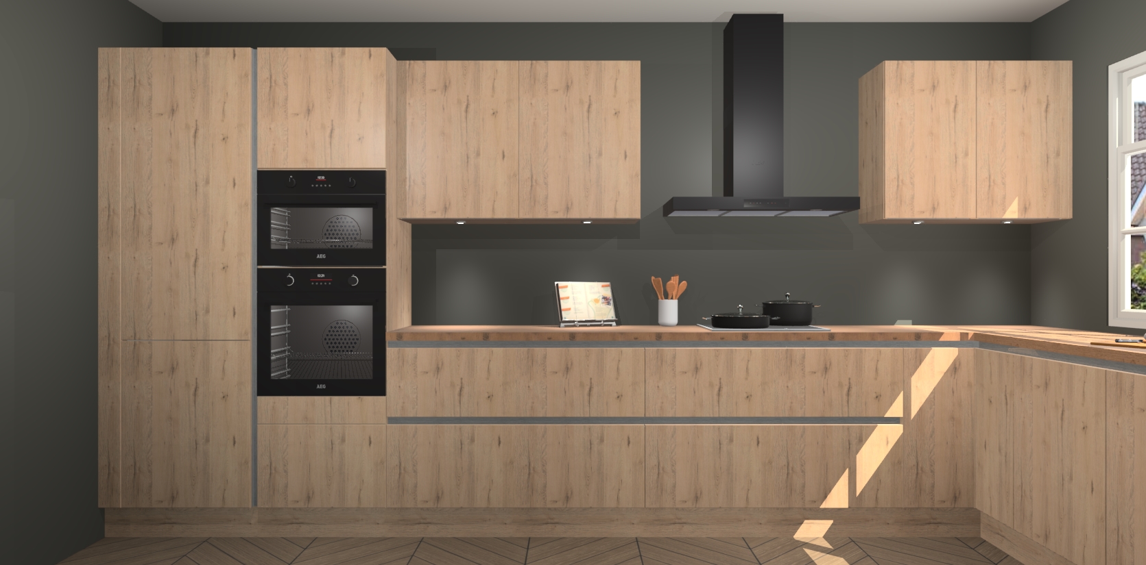 Heeft u nog apparatuur nodig? Geen probleem: de madera natuur greeploze keuken Graz bevat vijf ingebouwde apparaten - een oven, inductiekookplaat, afzuigkap, vaatwasser en koelkast - die gemakkelijk kunnen worden bijgewerkt naar AEG na bestelling. En als dat nog niet genoeg is; onze kasten worden pre-geassembleerd geleverd en zijn verkrijgbaar tegen een vastgeroeste lage prijs! U hoeft nooit meer te zoeken naar goede kwaliteit en service want onze producten hebben echt Duitse kwaliteit.