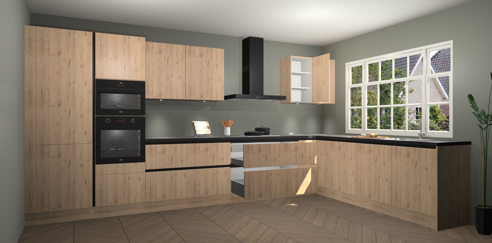 Kom dichtbij de perfecte keuken van uw dromen met de madera natuur greeploze keuken Graz. Met een prachtige houtlook en eigentijds ontwerp, straalt deze keuken warmte en sfeer uit. Of u nu liefhebber bent van traditionele of moderne stijlen, er is genoeg ruimte om aan al uw behoeften te voldoen.