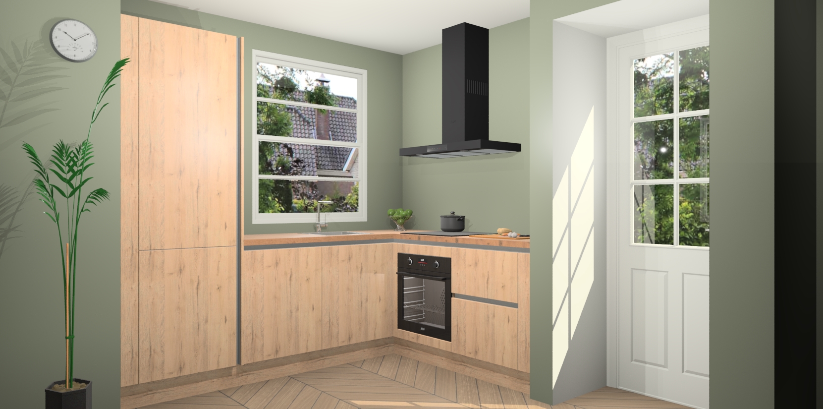 Plus: de Madera Natuur greeploze keuken Harbin is kant en klaar voorzien van 5 inbouwapparaten. U krijgt er direct bij: een oven, inductiekookplaat, afzuigkap, vaatwasser én koelkast. En als dat nog niet luxueus genoeg is, heeft u nog de mogelijkheid om de apparaten te upgraden naar AEG of om uw oven te vervangen door een combimagnetron. Ook fijn van voordeel zijn de softclosing-deuren die ervoor zorgen dat u geen geluid hoeft te maken wanneer u weer uw koelkastdeurtjes dichtdoet!