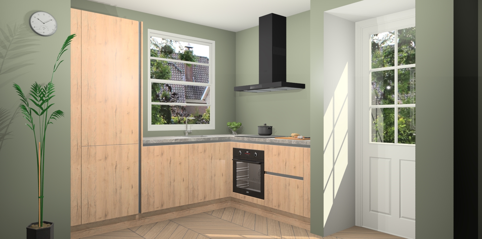 Plus: de Madera Natuur greeploze keuken Harbin is kant en klaar voorzien van 5 inbouwapparaten. U krijgt er direct bij: een oven, inductiekookplaat, afzuigkap, vaatwasser én koelkast. En als dat nog niet luxueus genoeg is, heeft u nog de mogelijkheid om de apparaten te upgraden naar AEG of om uw oven te vervangen door een combimagnetron. Ook fijn van voordeel zijn de softclosing-deuren die ervoor zorgen dat u geen geluid hoeft te maken wanneer u weer uw koelkastdeurtjes dichtdoet!