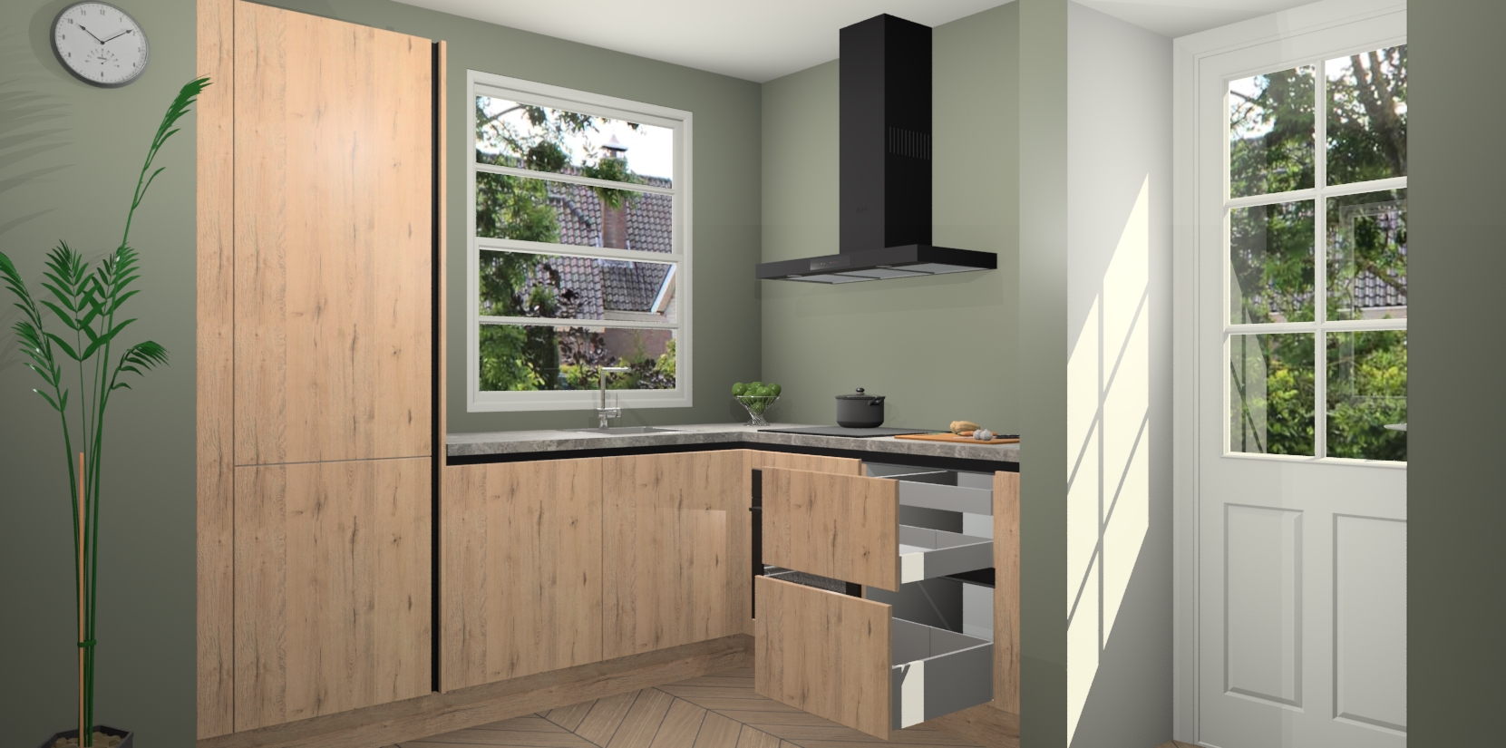 Wilt u een echte aanwinst voor uw keuken, maar bent u op zoek naar iets specialers dan de standaardkeukens? Kies dan voor de Madera Natuur greeploze keuken Harbin! Dit prachtige hoekkeukenontwerp geeft u alle ruimte om optimaal te genieten van heerlijk koken. Het uitmuntende afwerkingsniveau, de fraaie houtstructuur en de sfeervolle zwarte grepen maken van de Madera Natuur greeploze keuken Harbin de perfecte keuze voor zowel enthousiaste thuiskoks als design-minded interieurliefhebbers.