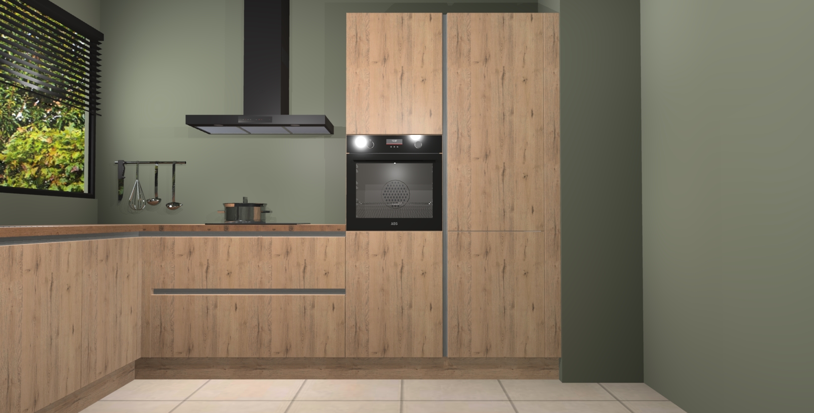 Met een modern, tijdloos design en ruime opslagruimte, zult u zich in no-time thuis voelen in uw nieuwe keuken. Uw leven wordt eenvoudiger met de soft-close deuren die voor het ultieme stille comfort zorgen - geen geluid dat u stoort terwijl u kookt. Ook is de keuken voorzien van 5 ingebouwde apparaten: een oven, inductie kookplaat, afzuigkap, vaatwasser en koelkast. Deze kunnen gemakkelijk na bestelling worden bijgewerkt naar AEG - waardoor uw luxe ervaring compleet is.