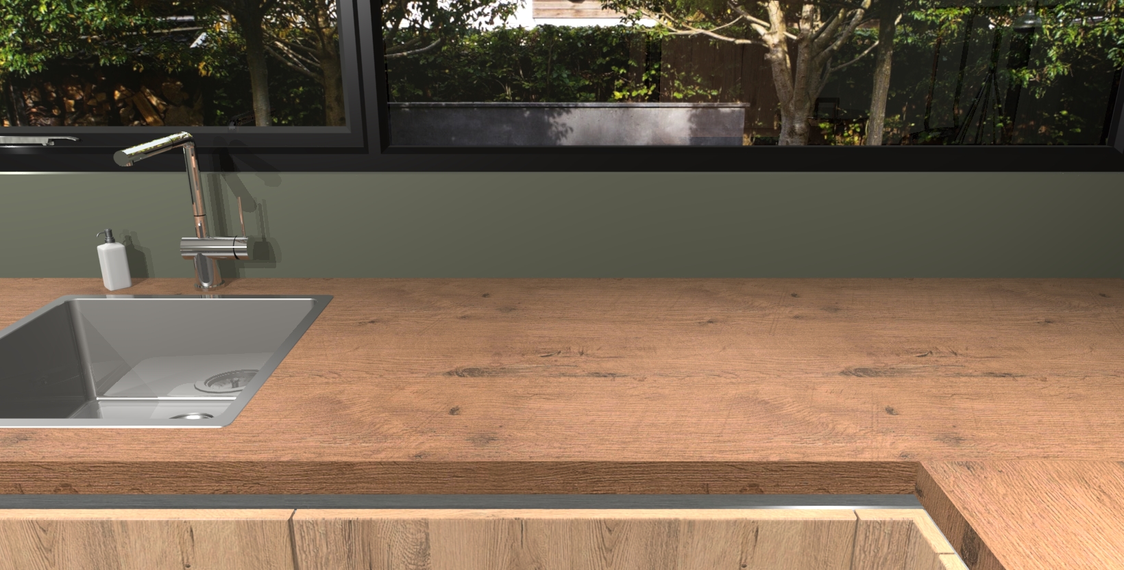 - Bij een hoekwerkblad zijn de hoeken in gevreesd en op maat gemaakt
