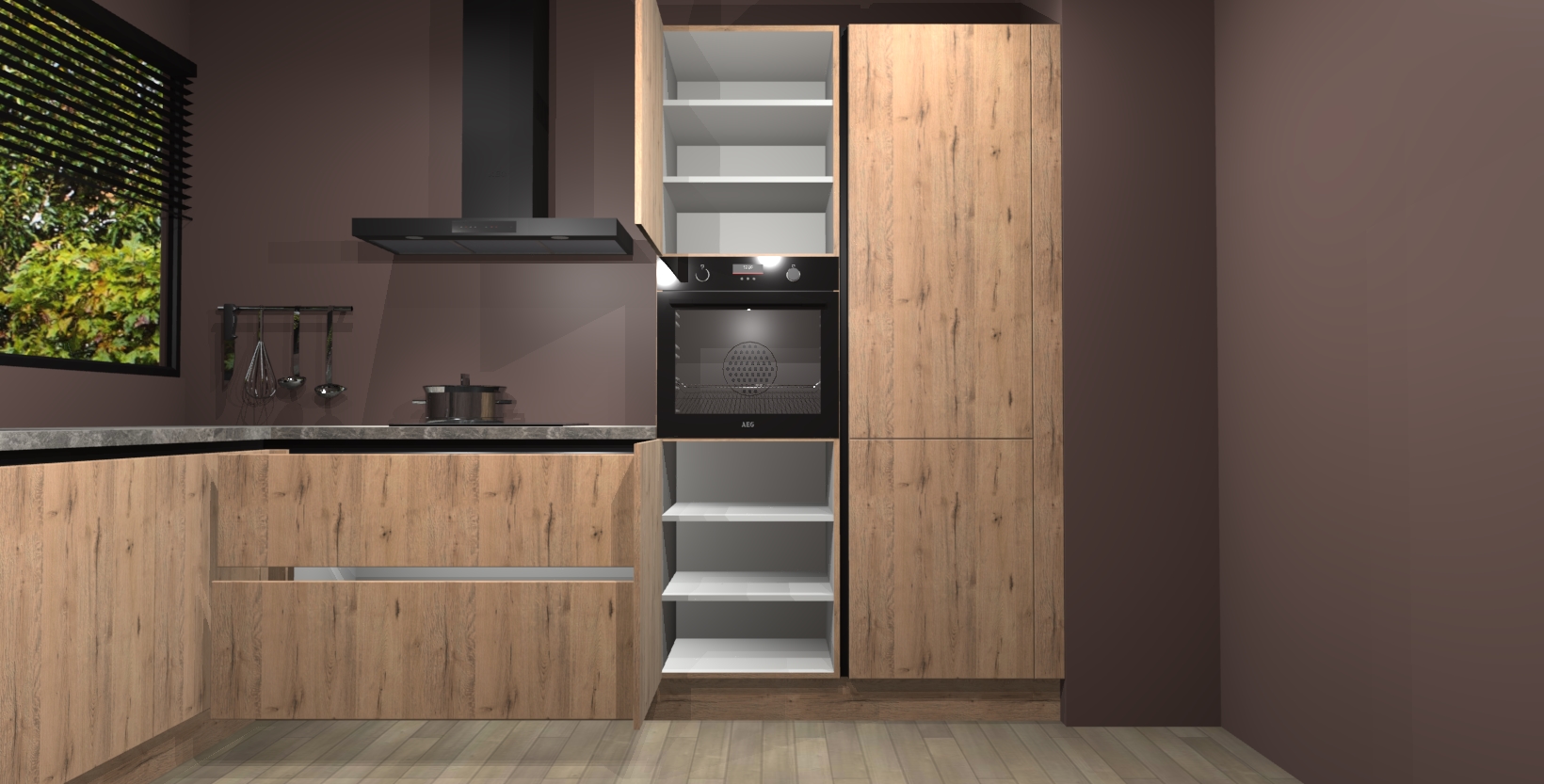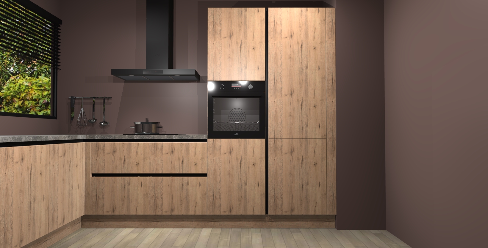 Met een modern, tijdloos design en ruime opslagruimte, zult u zich in no-time thuis voelen in uw nieuwe keuken. Uw leven wordt eenvoudiger met de soft-close deuren die voor het ultieme stille comfort zorgen - geen geluid dat u stoort terwijl u kookt. Ook is de keuken voorzien van 5 ingebouwde apparaten: een oven, inductie kookplaat, afzuigkap, vaatwasser en koelkast. Deze kunnen gemakkelijk na bestelling worden bijgewerkt naar AEG - waardoor uw luxe ervaring compleet is.