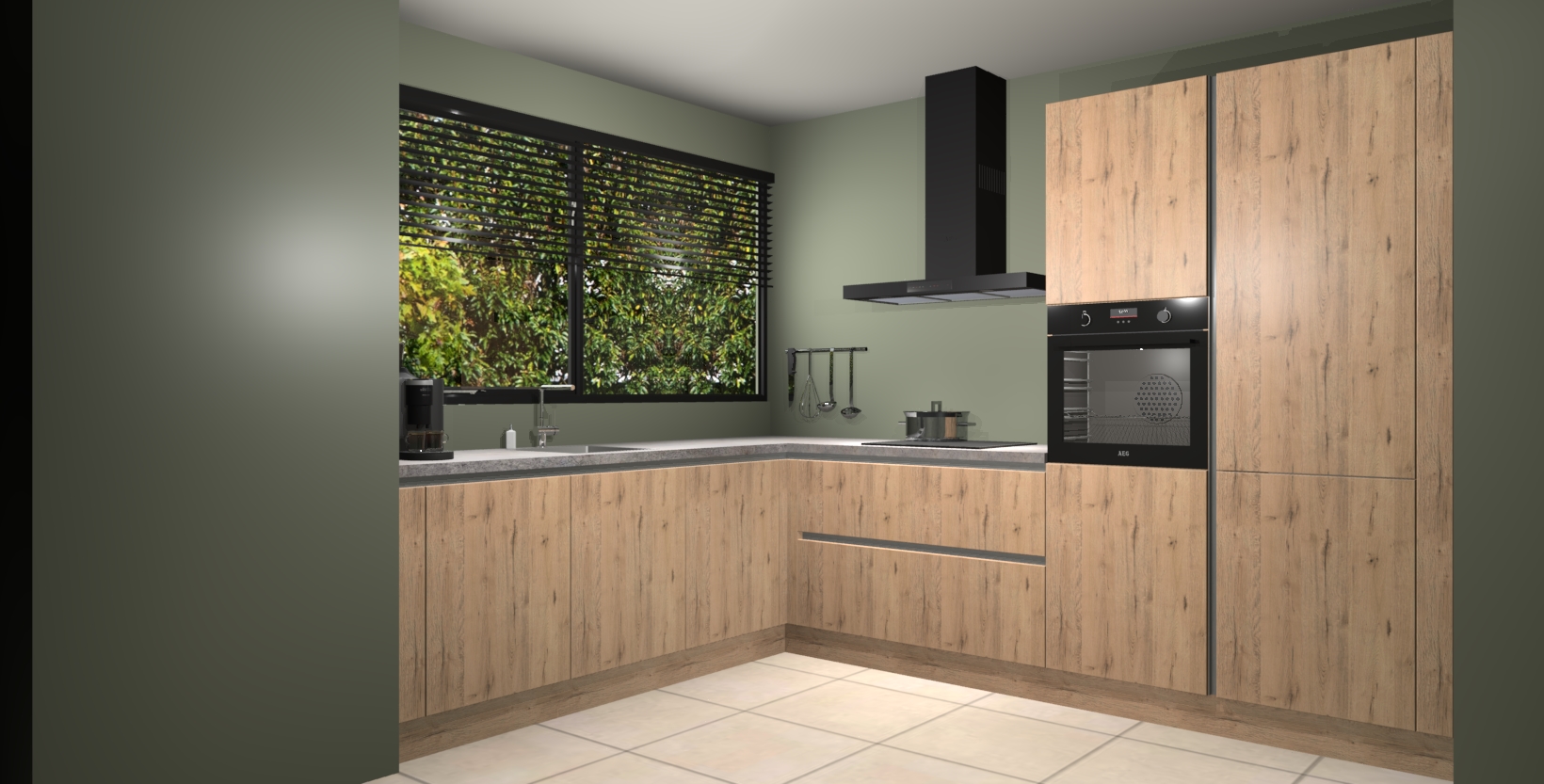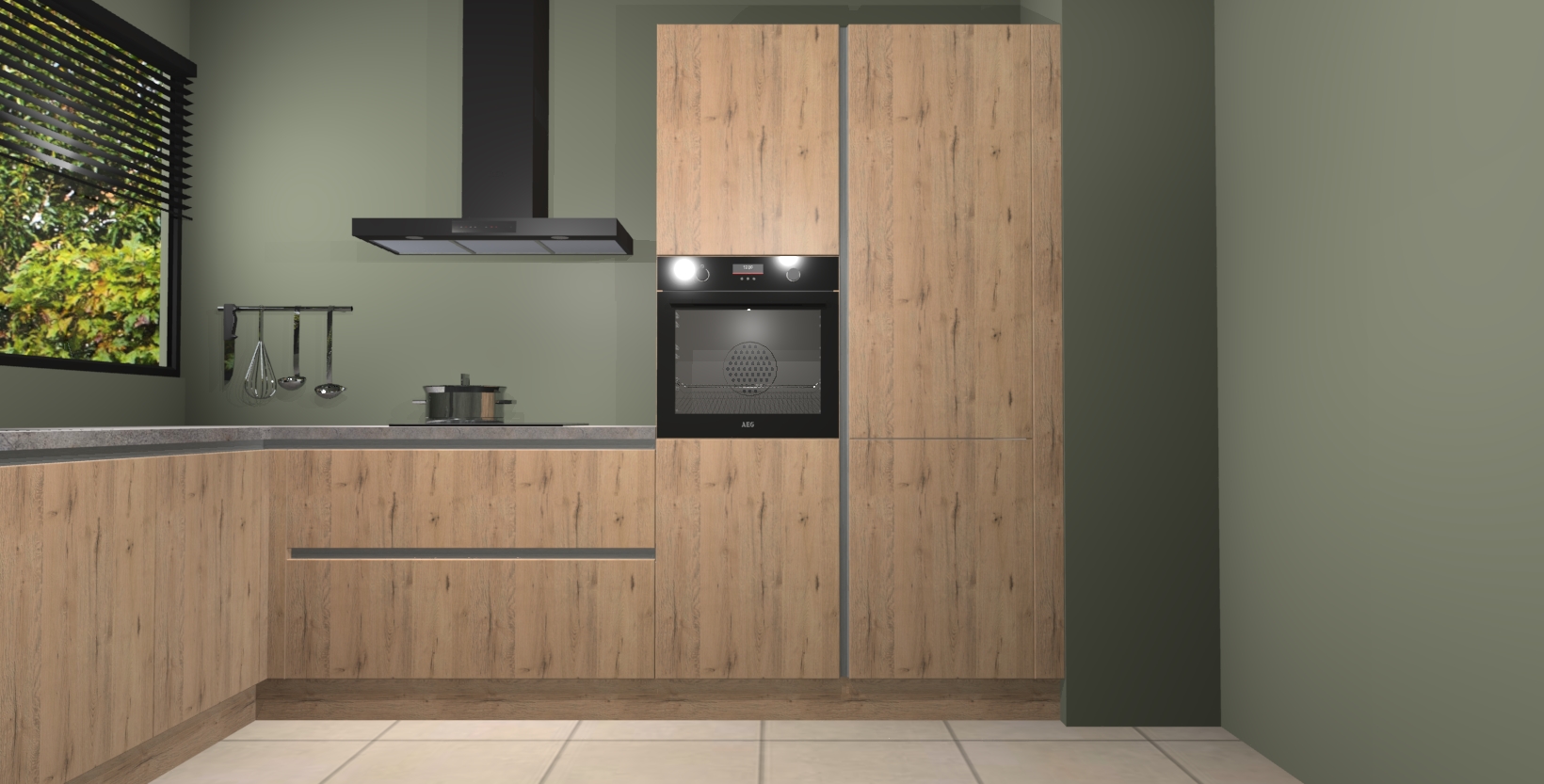 Met een modern, tijdloos design en ruime opslagruimte, zult u zich in no-time thuis voelen in uw nieuwe keuken. Uw leven wordt eenvoudiger met de soft-close deuren die voor het ultieme stille comfort zorgen - geen geluid dat u stoort terwijl u kookt. Ook is de keuken voorzien van 5 ingebouwde apparaten: een oven, inductie kookplaat, afzuigkap, vaatwasser en koelkast. Deze kunnen gemakkelijk na bestelling worden bijgewerkt naar AEG - waardoor uw luxe ervaring compleet is.