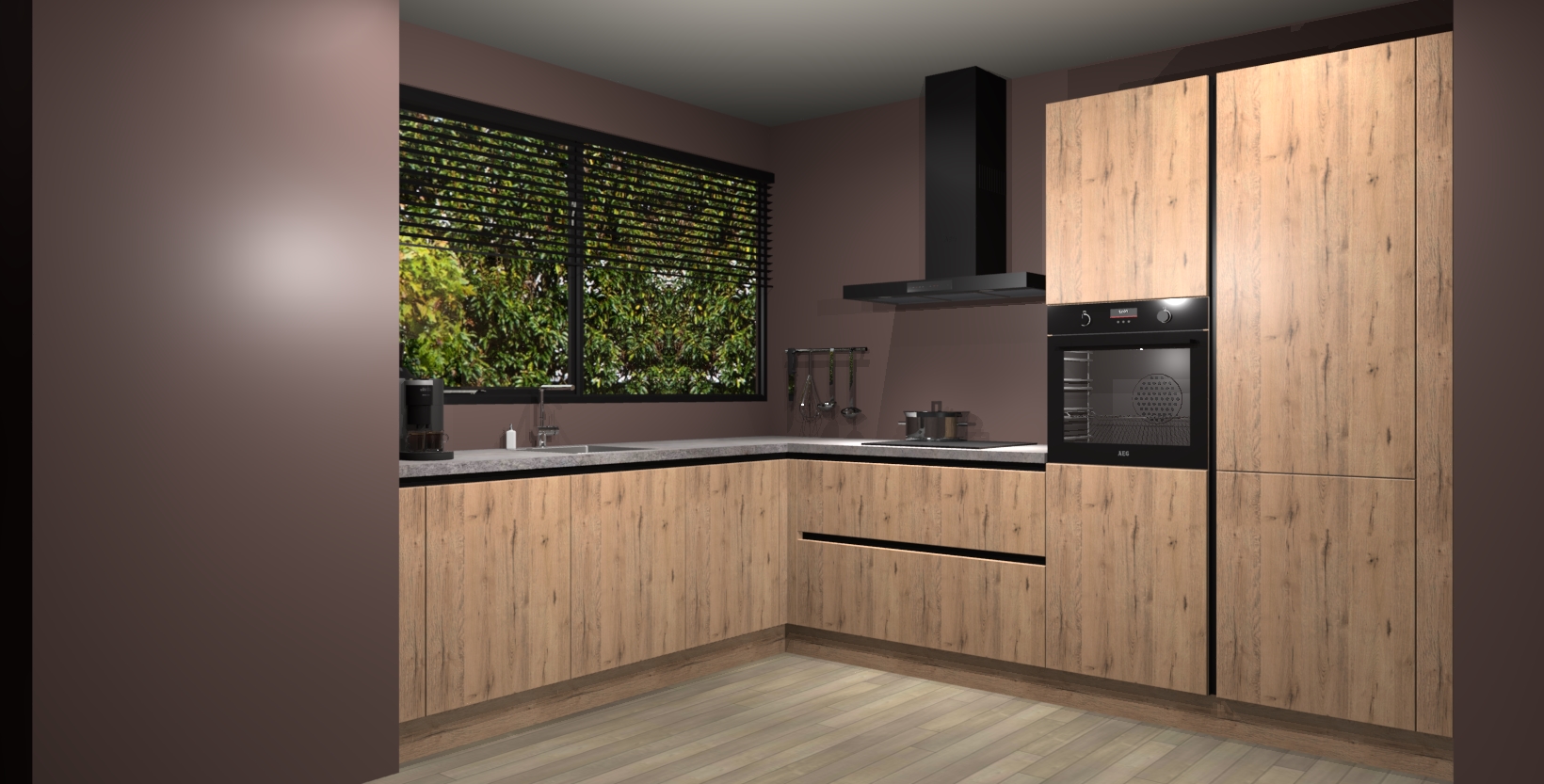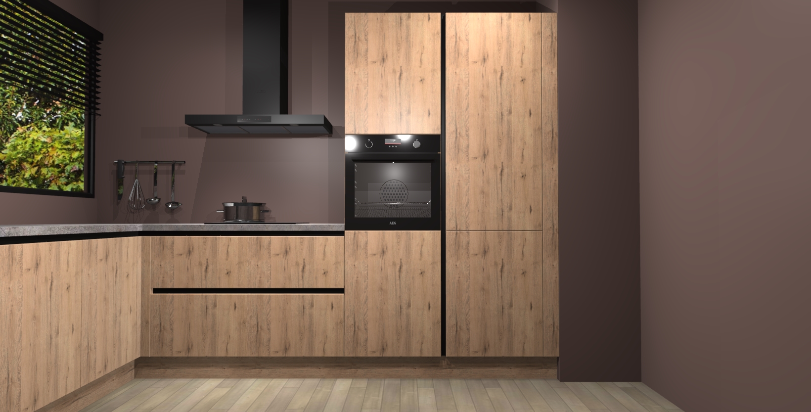Met een modern, tijdloos design en ruime opslagruimte, zult u zich in no-time thuis voelen in uw nieuwe keuken. Uw leven wordt eenvoudiger met de soft-close deuren die voor het ultieme stille comfort zorgen - geen geluid dat u stoort terwijl u kookt. Ook is de keuken voorzien van 5 ingebouwde apparaten: een oven, inductie kookplaat, afzuigkap, vaatwasser en koelkast. Deze kunnen gemakkelijk na bestelling worden bijgewerkt naar AEG - waardoor uw luxe ervaring compleet is.