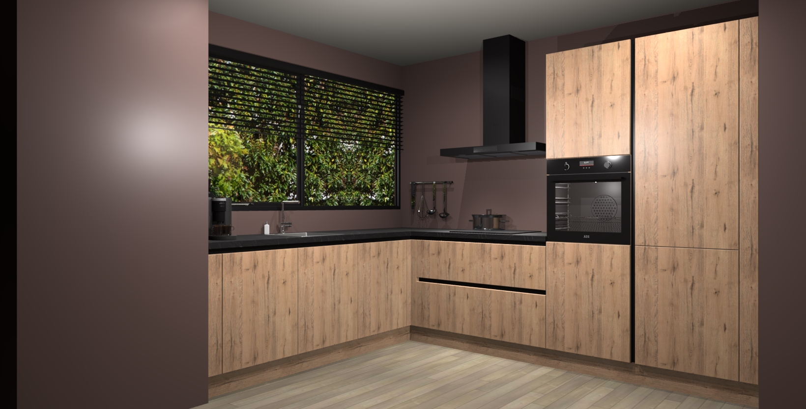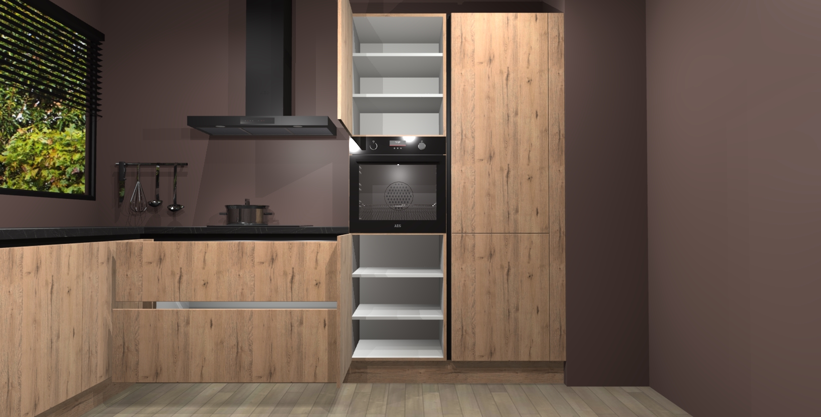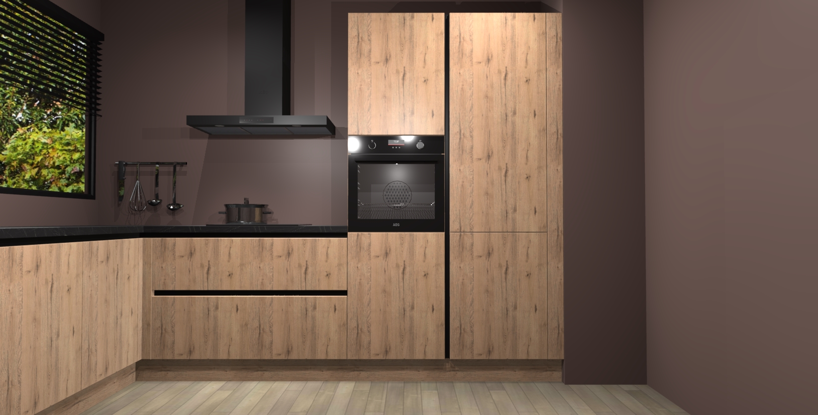 Met een modern, tijdloos design en ruime opslagruimte, zult u zich in no-time thuis voelen in uw nieuwe keuken. Uw leven wordt eenvoudiger met de soft-close deuren die voor het ultieme stille comfort zorgen - geen geluid dat u stoort terwijl u kookt. Ook is de keuken voorzien van 5 ingebouwde apparaten: een oven, inductie kookplaat, afzuigkap, vaatwasser en koelkast. Deze kunnen gemakkelijk na bestelling worden bijgewerkt naar AEG - waardoor uw luxe ervaring compleet is.