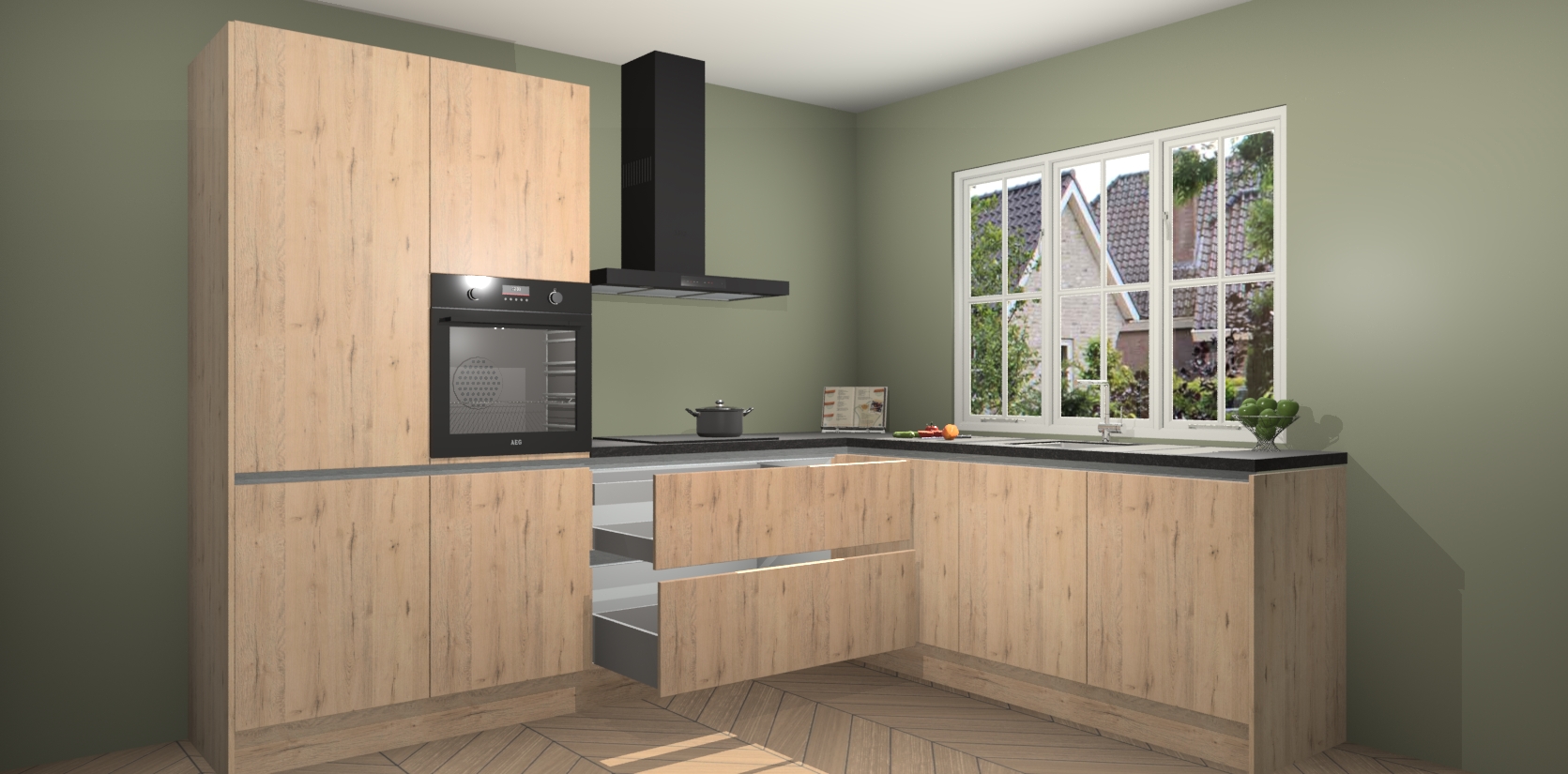 Inclusief plinten, stelpoten en werkblad