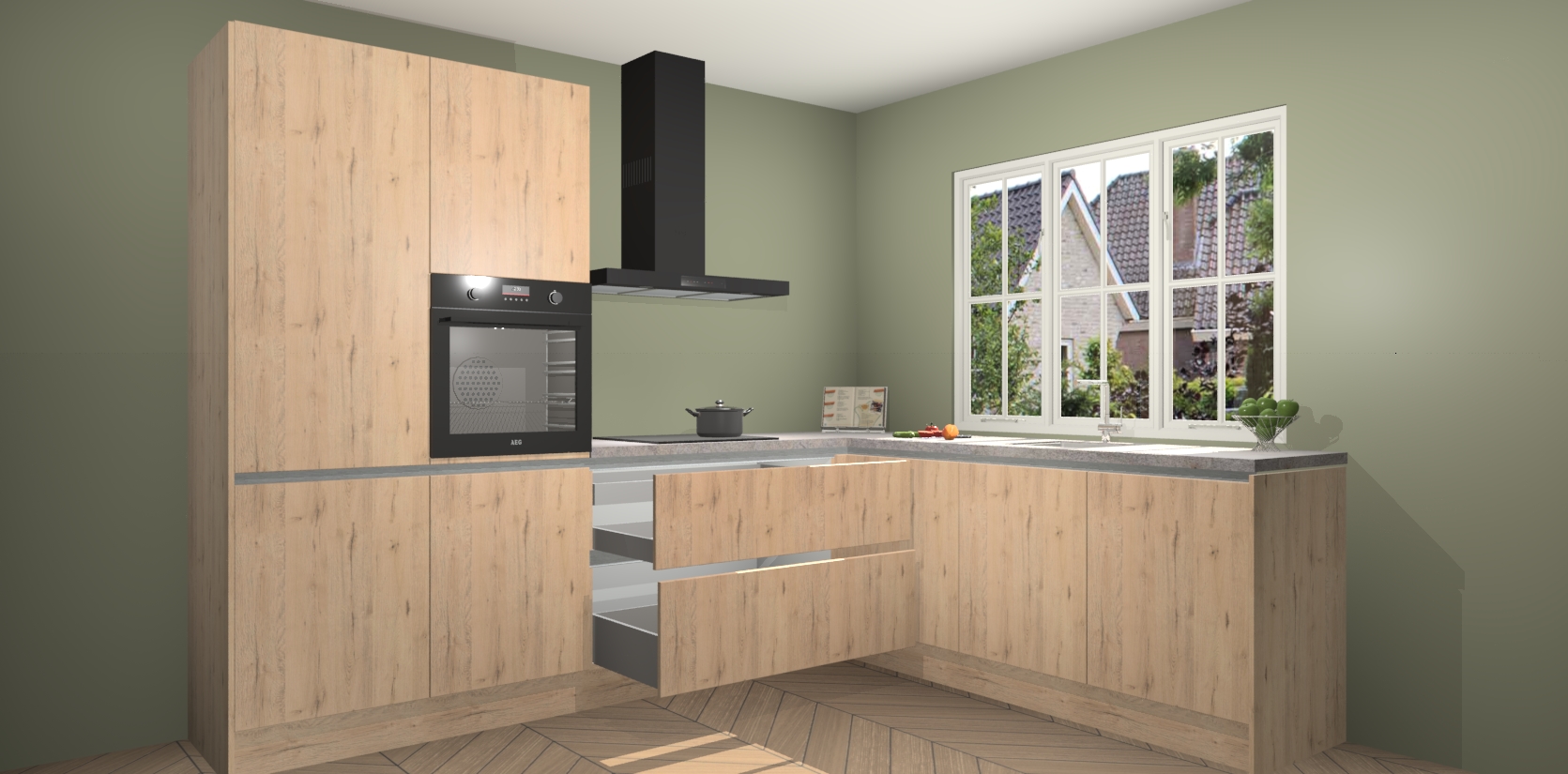 Inclusief plinten, stelpoten en werkblad