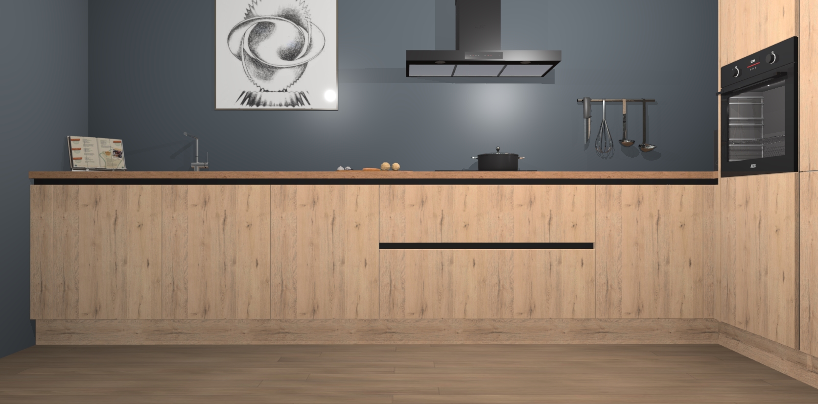 Welkom bij de Madera Natuur greeploze keuken Khao Lak. Deze prachtige keuken zal de komende jaren het middelpunt van de belangstelling in uw huis zijn. Uitgerust met vijf inbouwapparaten komt u nooit kookgereedschap tekort. Bovendien geeft de warme houtlook elke ruimte een uitnodigende en tijdloze uitstraling.