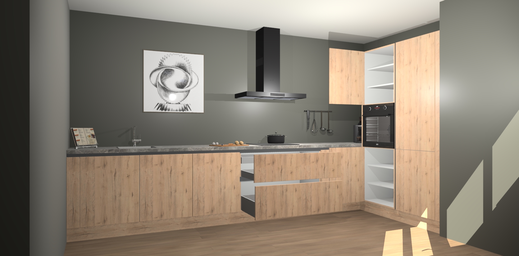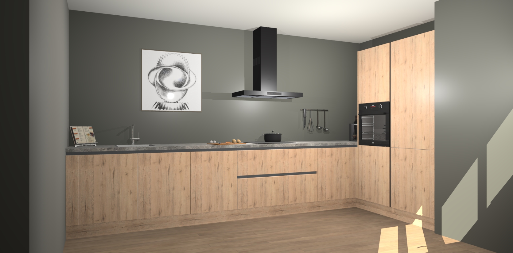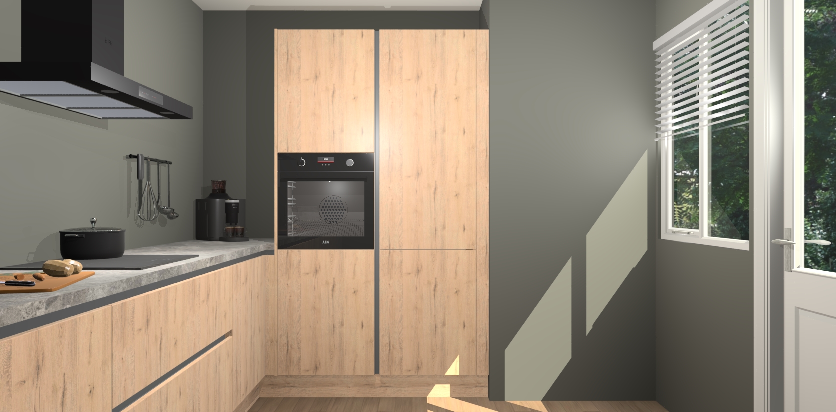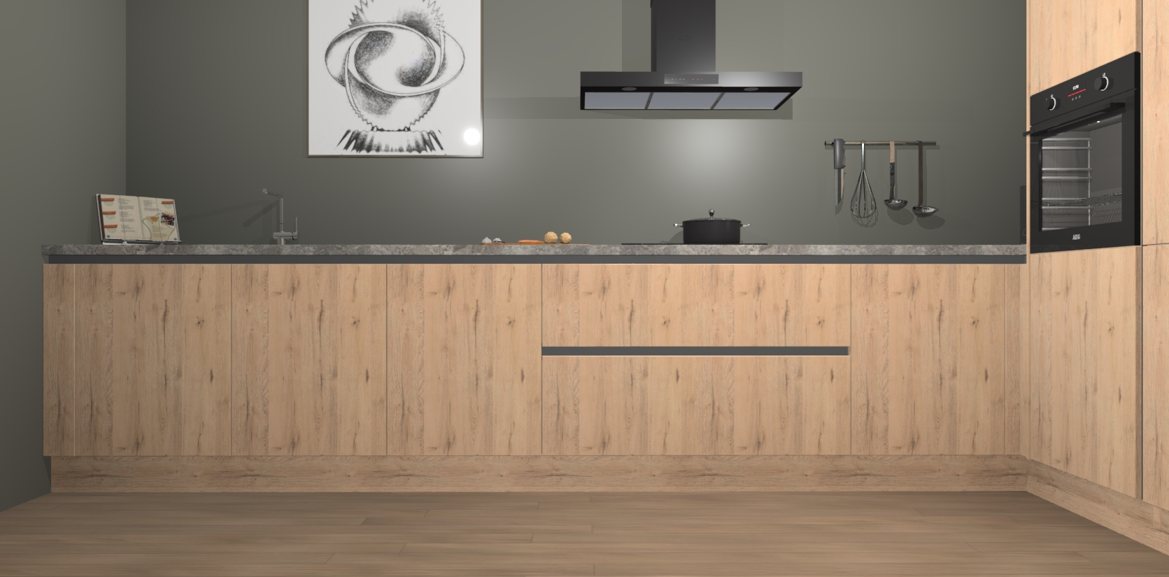 Welkom bij de Madera Natuur greeploze keuken Khao Lak. Deze prachtige keuken zal de komende jaren het middelpunt van de belangstelling in uw huis zijn. Uitgerust met vijf inbouwapparaten komt u nooit kookgereedschap tekort. Bovendien geeft de warme houtlook elke ruimte een uitnodigende en tijdloze uitstraling.