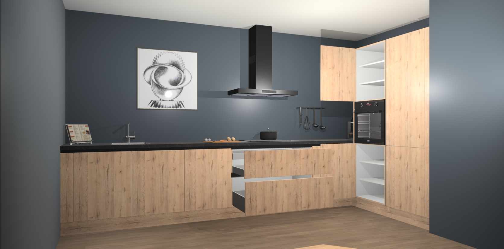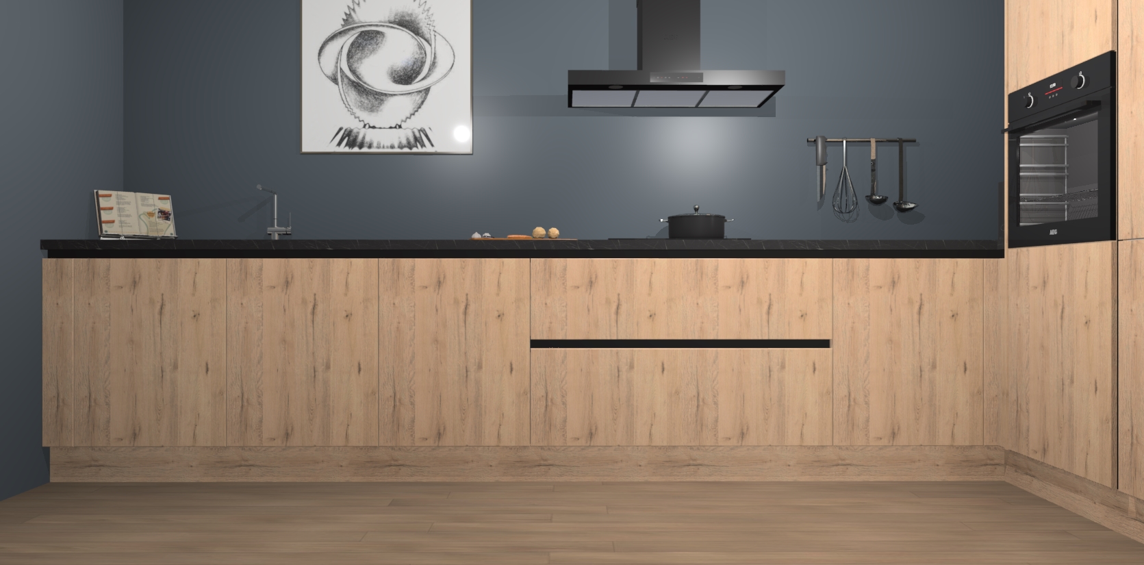 Welkom bij de Madera Natuur greeploze keuken Khao Lak. Deze prachtige keuken zal de komende jaren het middelpunt van de belangstelling in uw huis zijn. Uitgerust met vijf inbouwapparaten komt u nooit kookgereedschap tekort. Bovendien geeft de warme houtlook elke ruimte een uitnodigende en tijdloze uitstraling.