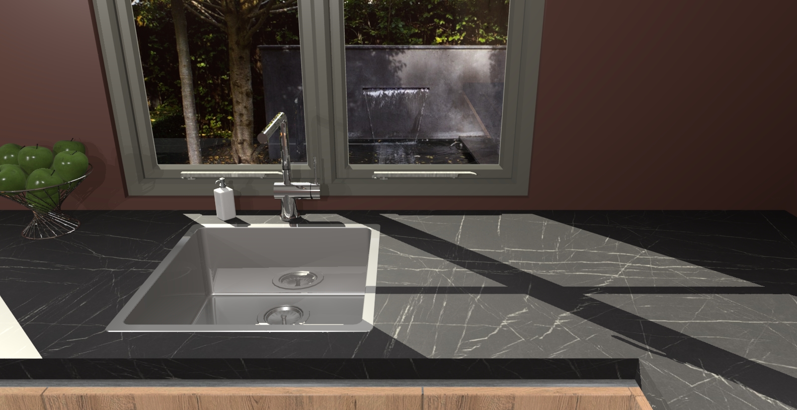 • Bij een hoekwerkblad zijn de hoeken in gevreesd en op maat gemaakt