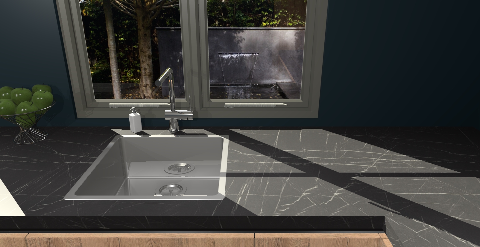 - Bij een hoekwerkblad zijn de hoeken in gevreesd en op maat gemaakt