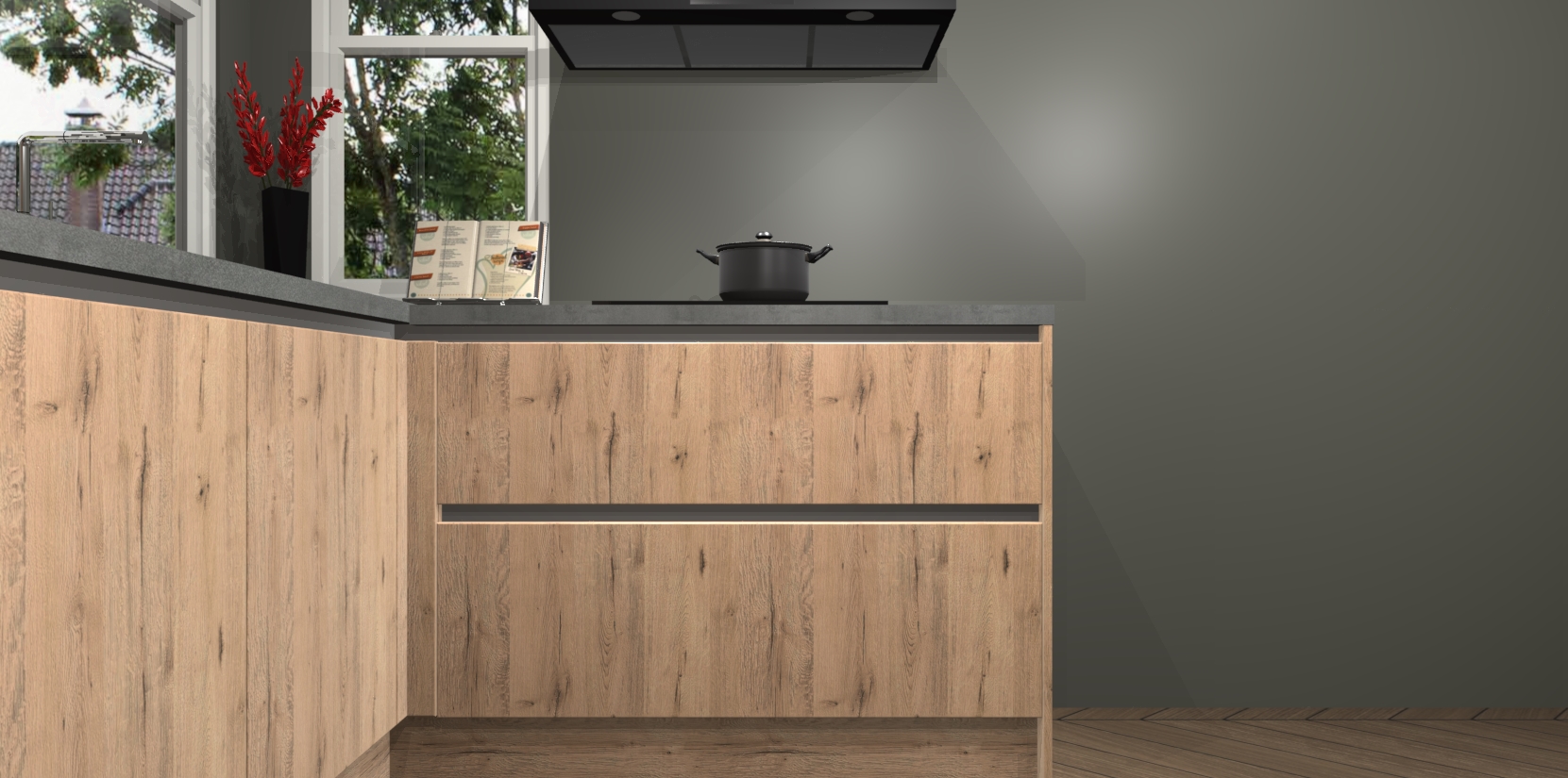 We hebben iets speciaals voor u: de Madera Natuur greeploze keuken Kotor. Het is een hoekkeuken die sfeer en warmte uitstraalt, en zijn hout-look geeft hem een unieke touch. Perfect voor elk huis!